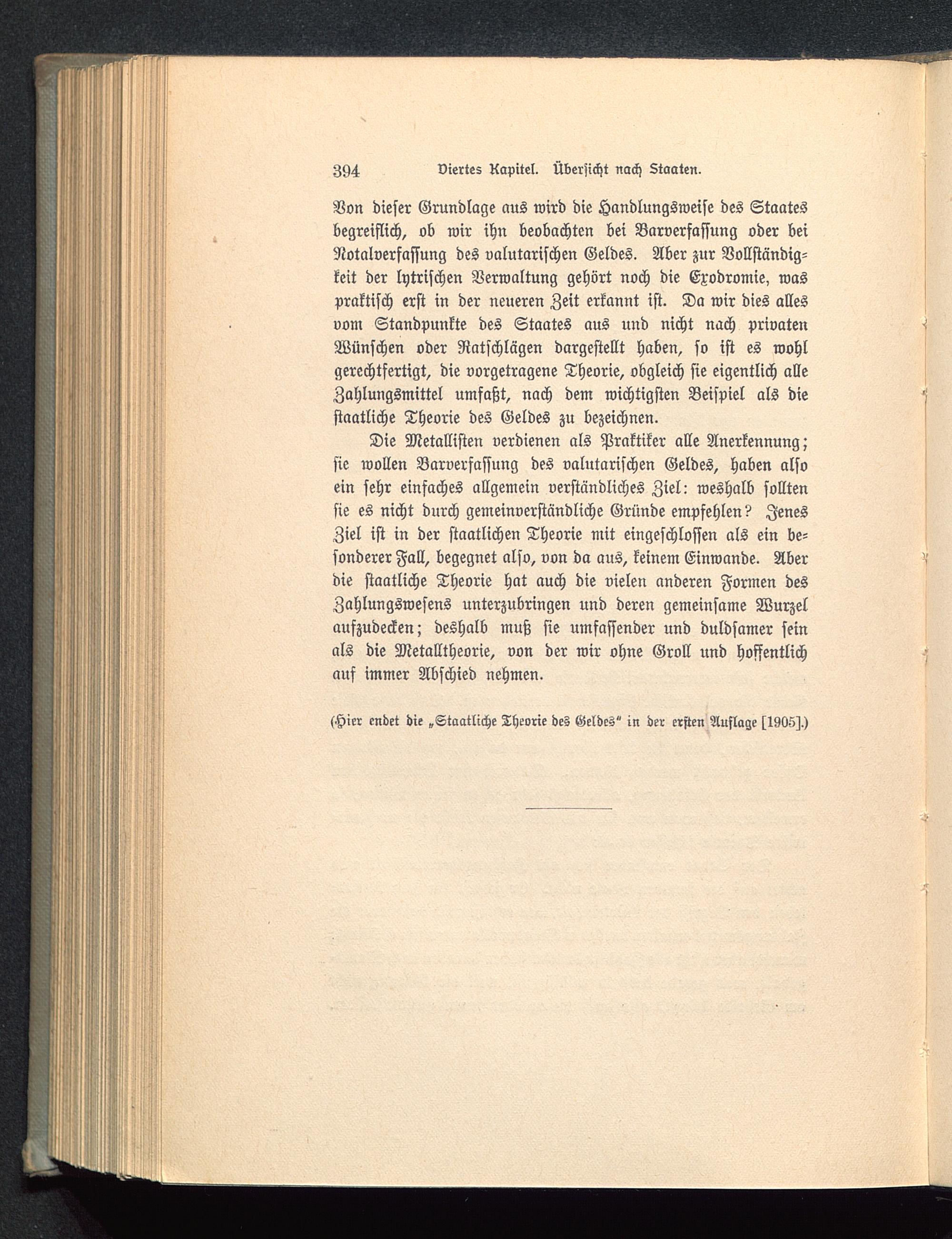 (Hier endet die „Staatliche Theorie des Geldes" in der ersten Auslage s1905).)