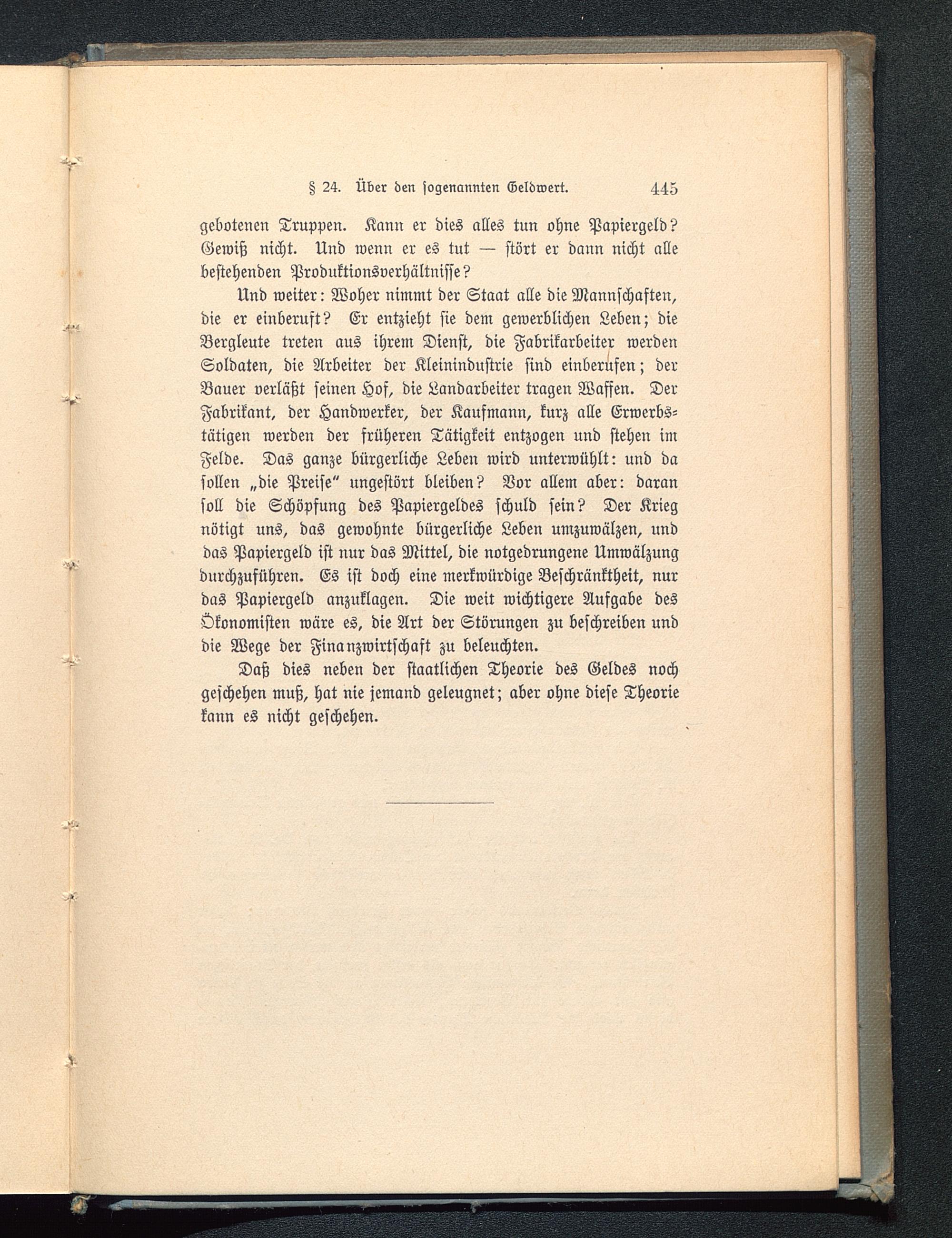 Daß dies neben der staatlichen Theorie des Geldes nochgeschehen muß, hat nie jemand geleugnet; aber ohne diese Theoriekann es nicht geschehen.