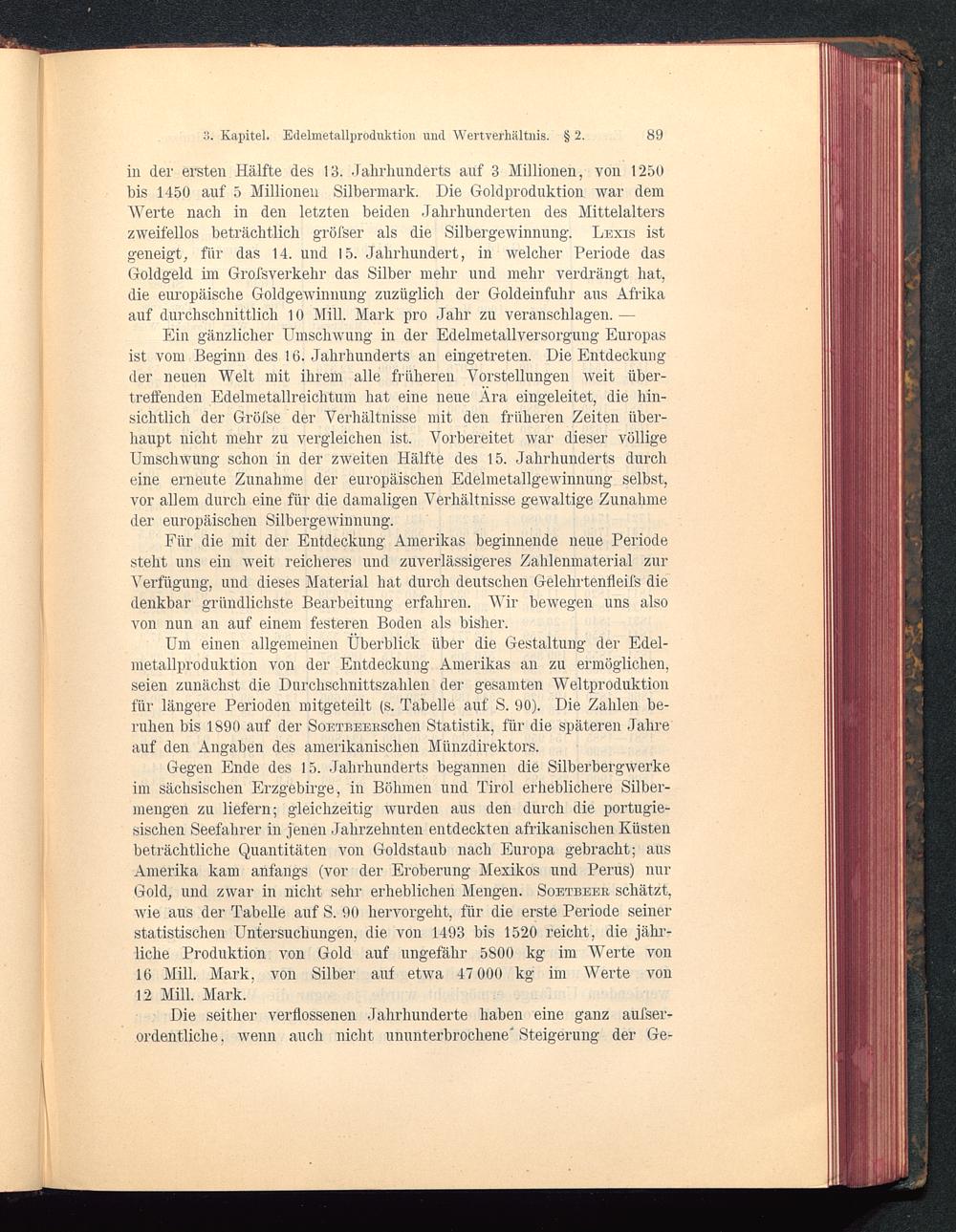 3. Kapitel. Edelmetallproduktion und Wertverhältnis. § 2. 89