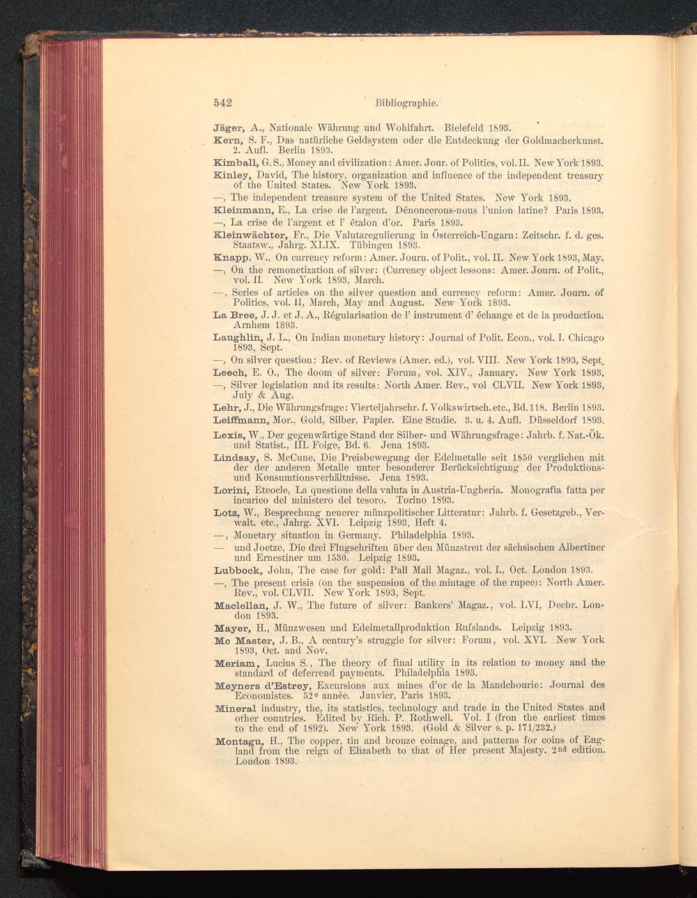 Lötz, W., Besprechung neuerer münzpolitischer Litteratur: Jahrb. f. Gesetzgeb., Ver-walt. etc., Jahrg. XVI. Leipzig 1893, Heft 4.