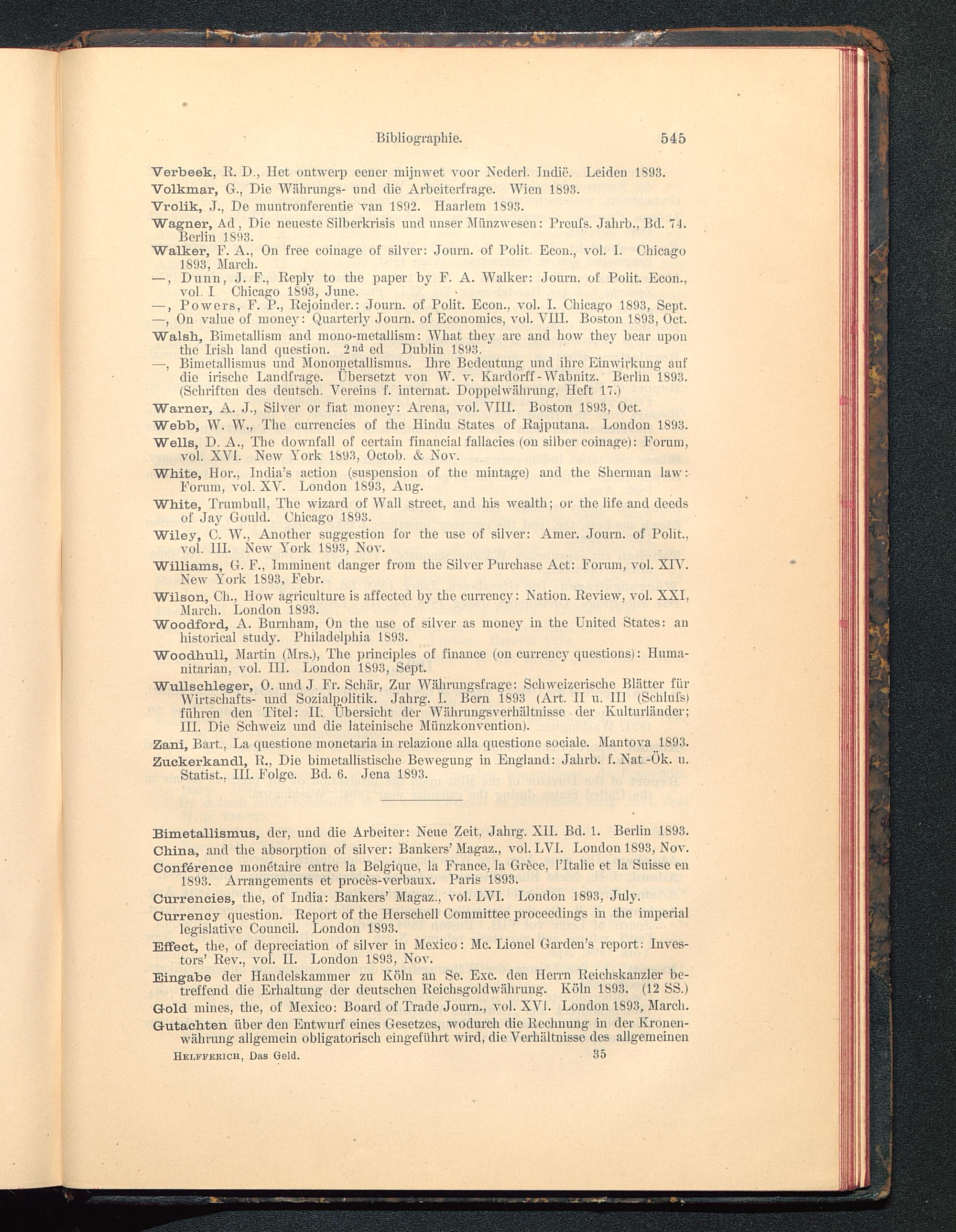 —, Dunn, J. F., Reply to the paper by F. A. Walker: Journ. of Polit. Econ.,vol. I Chicago 1893, June.