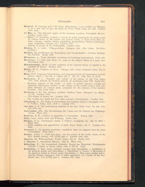 Macleod, H. Dunning and J. W. Cross, Bimetallism, 1, as a bubble, by Macleod;2, as a new way tö pay old debts, by Cross: Ninet. Cent., No. 220. London 1895, June.