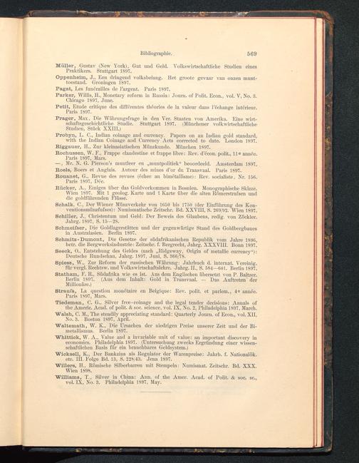 Prager, Max, Die Wiihrangsfrage in den Yer. Staaten von Amerika . Eine wirt-schaftsgeschichtliche Studie. Stuttgart 1897. (Münchener volkwirtschaftlicheStudien, Stück XXIII.)
