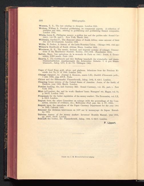 "Willis, H. Parker, A history of the Latin Monetary Union. Chicago 1902. (342 pp.)