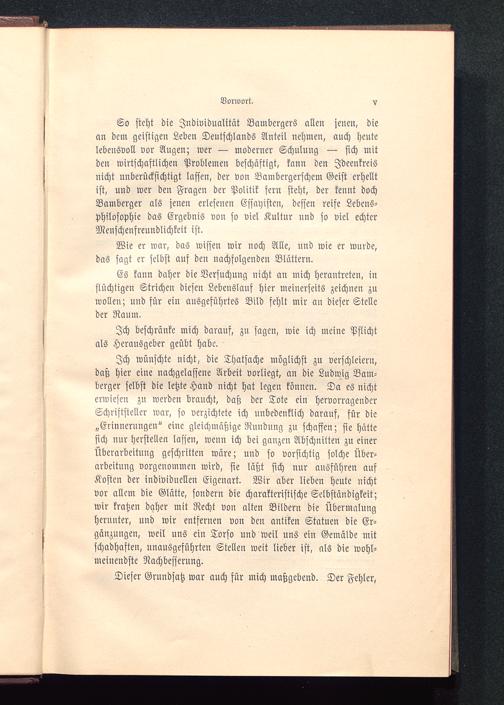 So steht die Individualität Bambergers allen jenen, diean dem geistigen Leben Deutschlands Anteil nehmen, auch heutelebensvoll vor Augen; wer — moderner Schulung — sich mitden wirtschaftlichen Problemen beschäftigt, kann den Jdeenkreisnicht unberücksichtigt lassen, der von Bambergerschem Geist erhelltist, und wer den Fragen der Politik fern steht, der kennt dochBamberger als jenen erlesenen Essayisten, dessen reife Lebens-philosophie das Ergebnis von so viel Kultur und so viel echterMenschenfreundlichkeit ist.