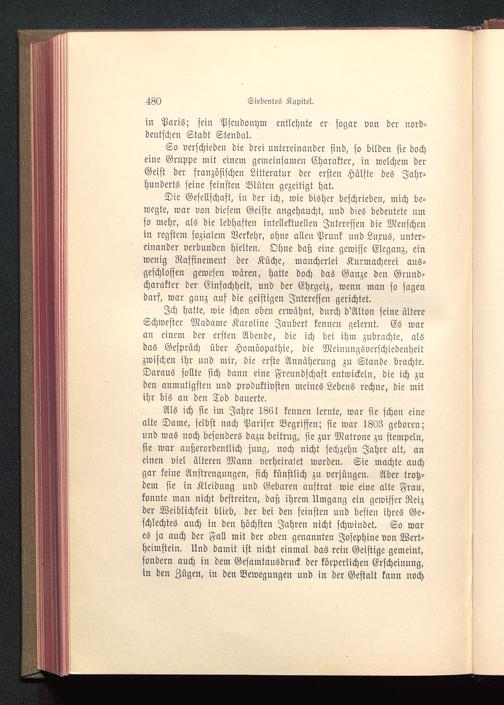 Die Gesellschaft, in der ich, wie bisher beschrieben, mich be-wegte, war von diesem Geiste angehaucht, und dies bedeutete umso mehr, als die lebhaften intellektuellen Interessen die Menschenin regstem sozialem Verkehr, ohne allen Prunk und Luxus, unter-einander verbunden hielten. Ohne daß eine gewisse Eleganz, einwenig Raffinement der Küche, mancherlei Kurmacherei aus-geschlossen gewesen wären, hatte doch das Ganze den Grund-charakter der Einfachheit, und der Ehrgeiz, wenn man so sagendarf, war gauz auf die geistigen Interessen gerichtet.