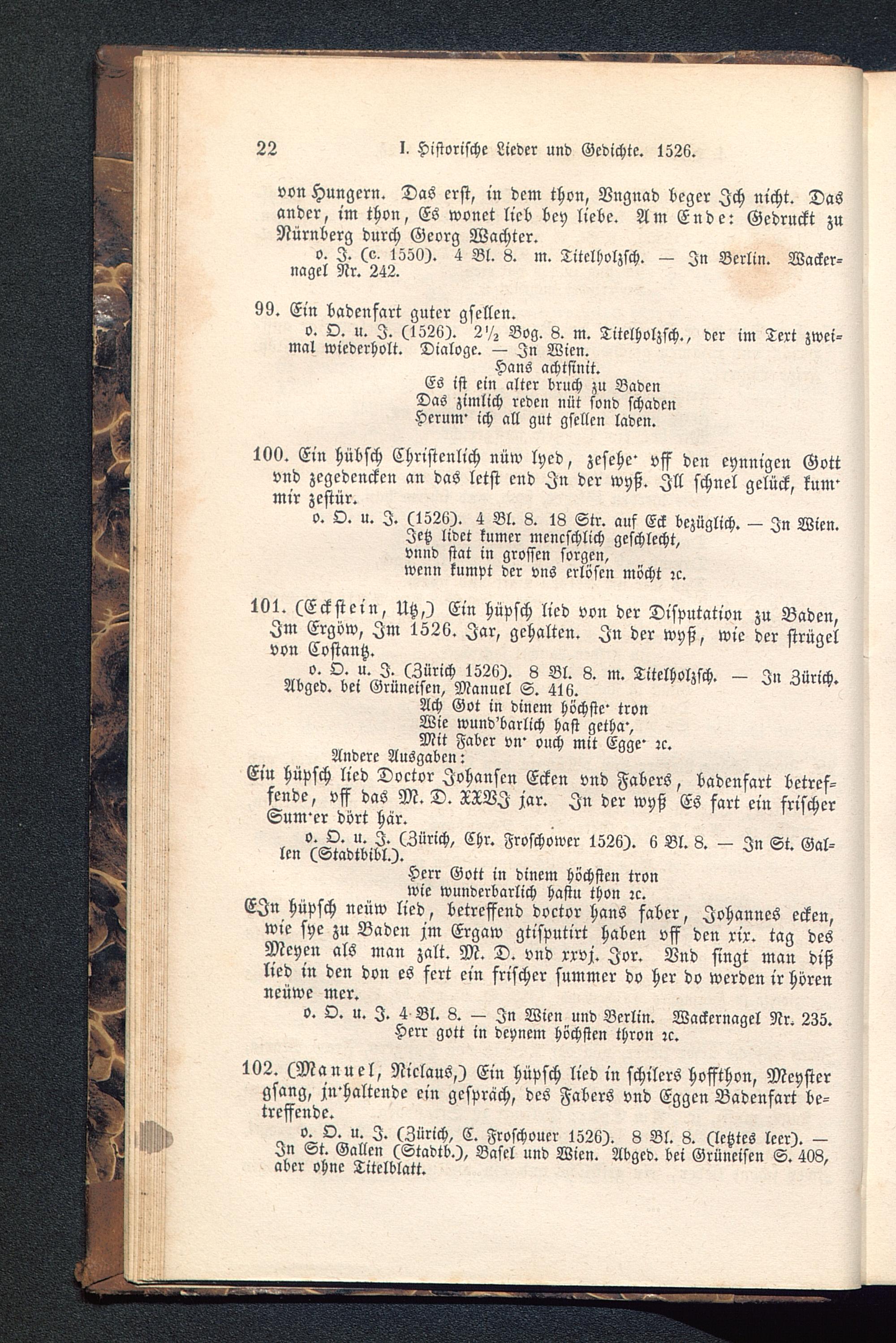 101. (Eckstein, Utz,) Ein hüpsch licd von der Disputation zu Baden,Im Ergöw, Im 1526. Jar, gehalten. In der wyß, wie der strügelvon Costantz.