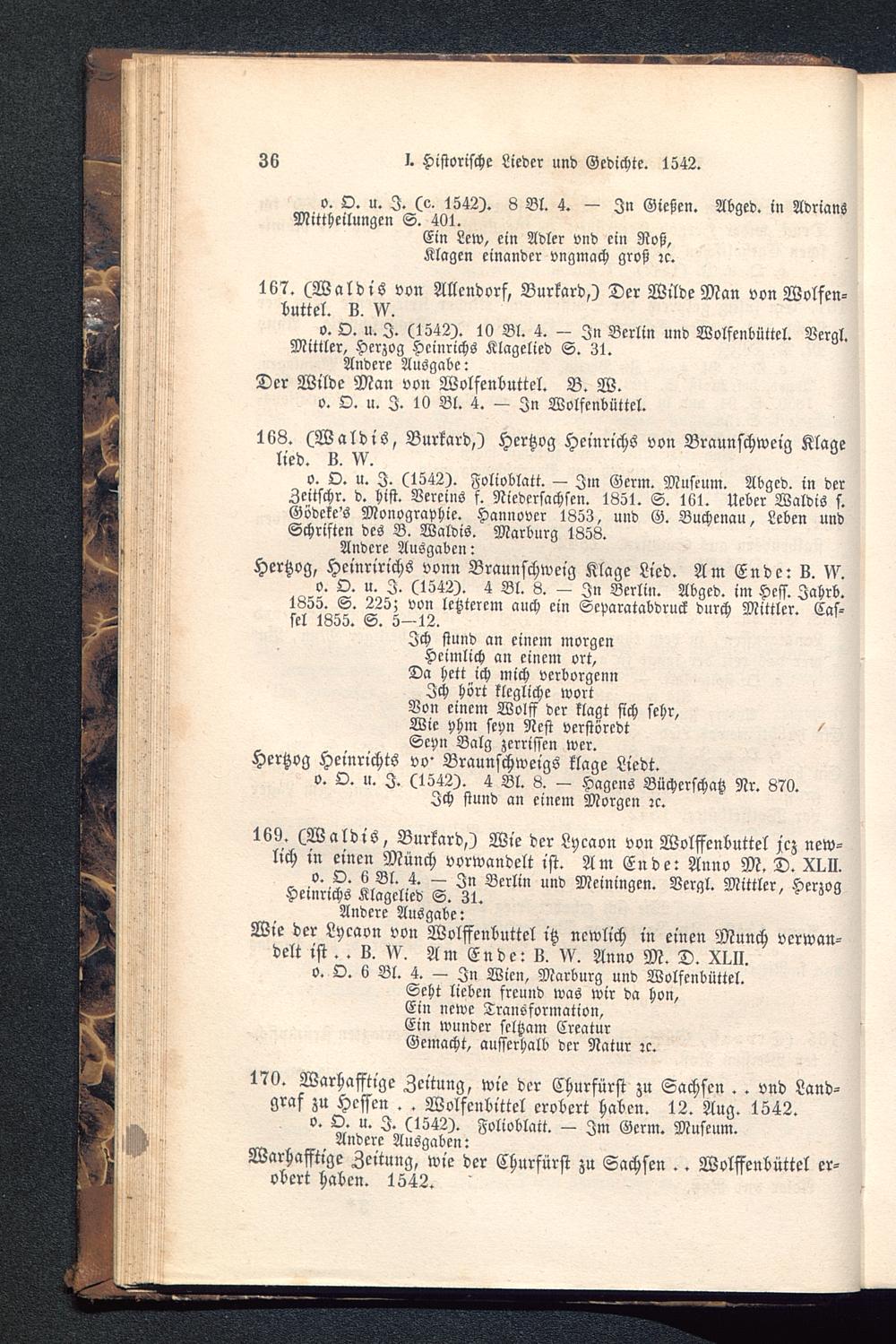 o. O. u. I. (1542). 10 Bl. 4. — In Berlin und Wolfenbüttel . Vergl.Mittler, Herzog Heinrichs Klagelied S. 31.Andere Ausgabe:Der Wilde Man von Wolfenbüttel . B. W.