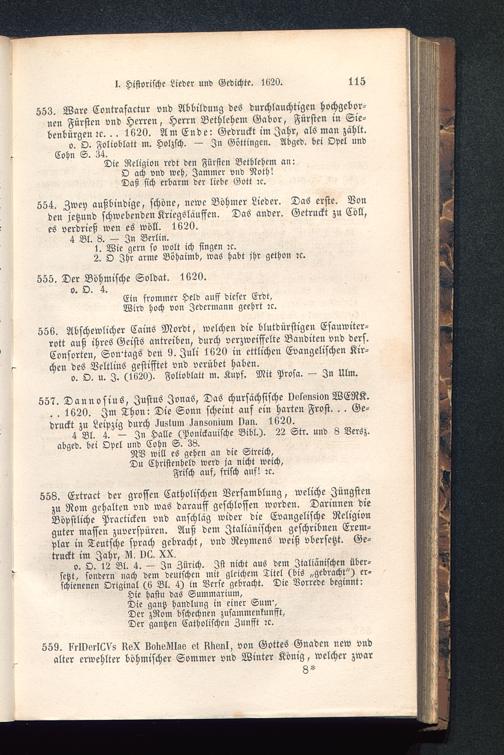 554. Zwey außbindige, schöne, newc Böhmer Lieder. Das erste. Vonden jetzund schwebenden Kriegsläuffen. Das ander. Gctruckt zu Cöll,es verdrieß wen es wöll. 1620.