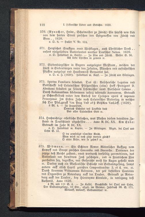 570. (Rynach er, Heinr., Schulmeister zu Zürich ) Ein hüpsch new Liedvon dem harten Streit zwischen den Eydgenossen von Zürich vndBern . . 1620.