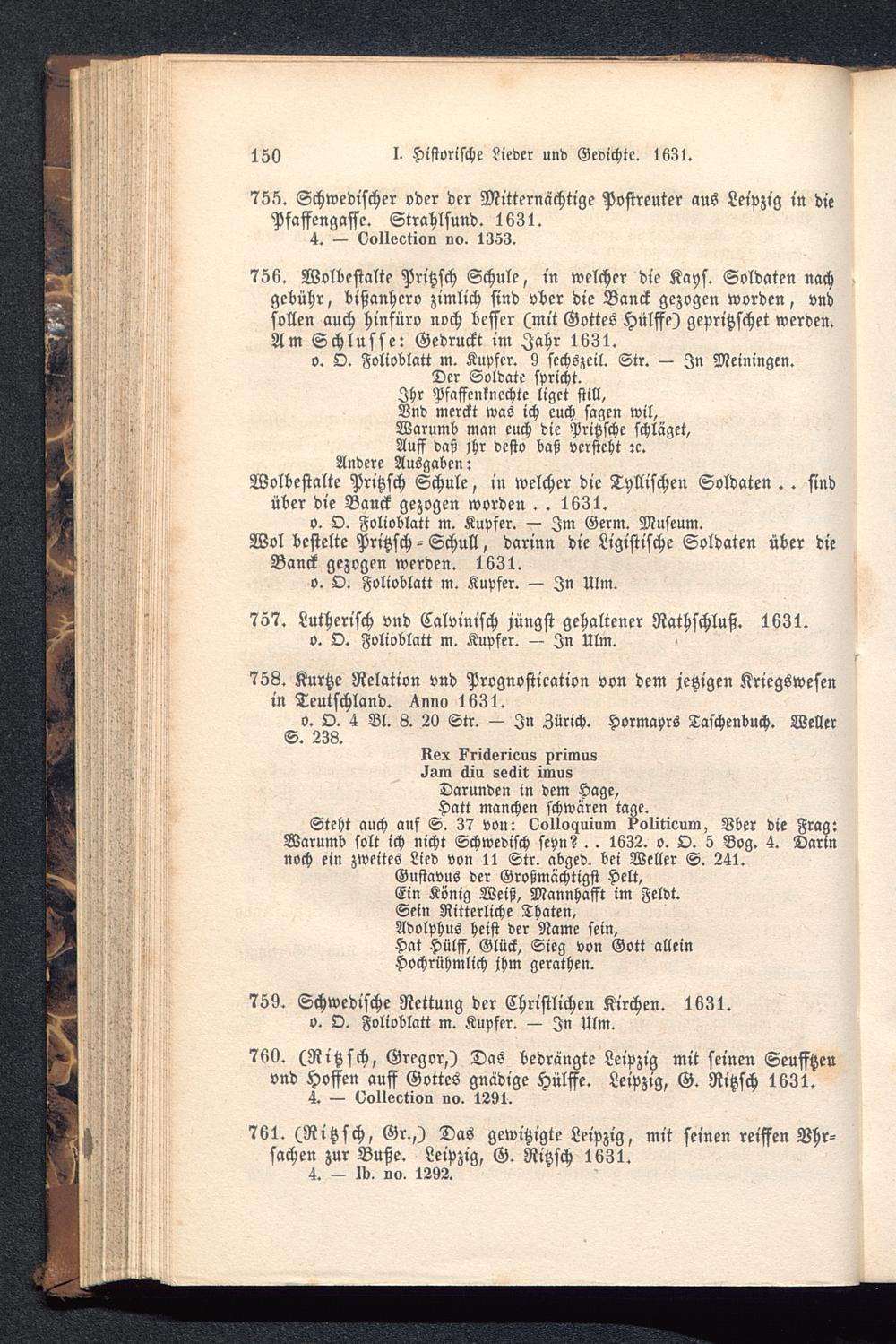 761. (Ritzsch, Gr.,) Das gewitzigte Leipzig , mit seinen reiffen Vhr-sachen zur Buße. Leipzig, G. Ritzsch 1631.4. — Id, uo, 1292.