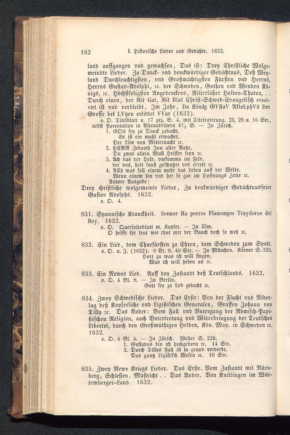 834. Zwey Schwedische Lieder. Das Erste: Von der Flucht vnd Nider-lag deß Kayserliche vnd Ligistischen Generalen, Graffen Johann vonTilly :c. Das Ander: Vom Fall vnd Vntergang der Römisch-Papi-stischen Religion, auch Vntertretung vnd Widcrbringung der TeutschenLibertet, durch den Großmüthigen Helden, Kön. May. in Schweden :c.1632.