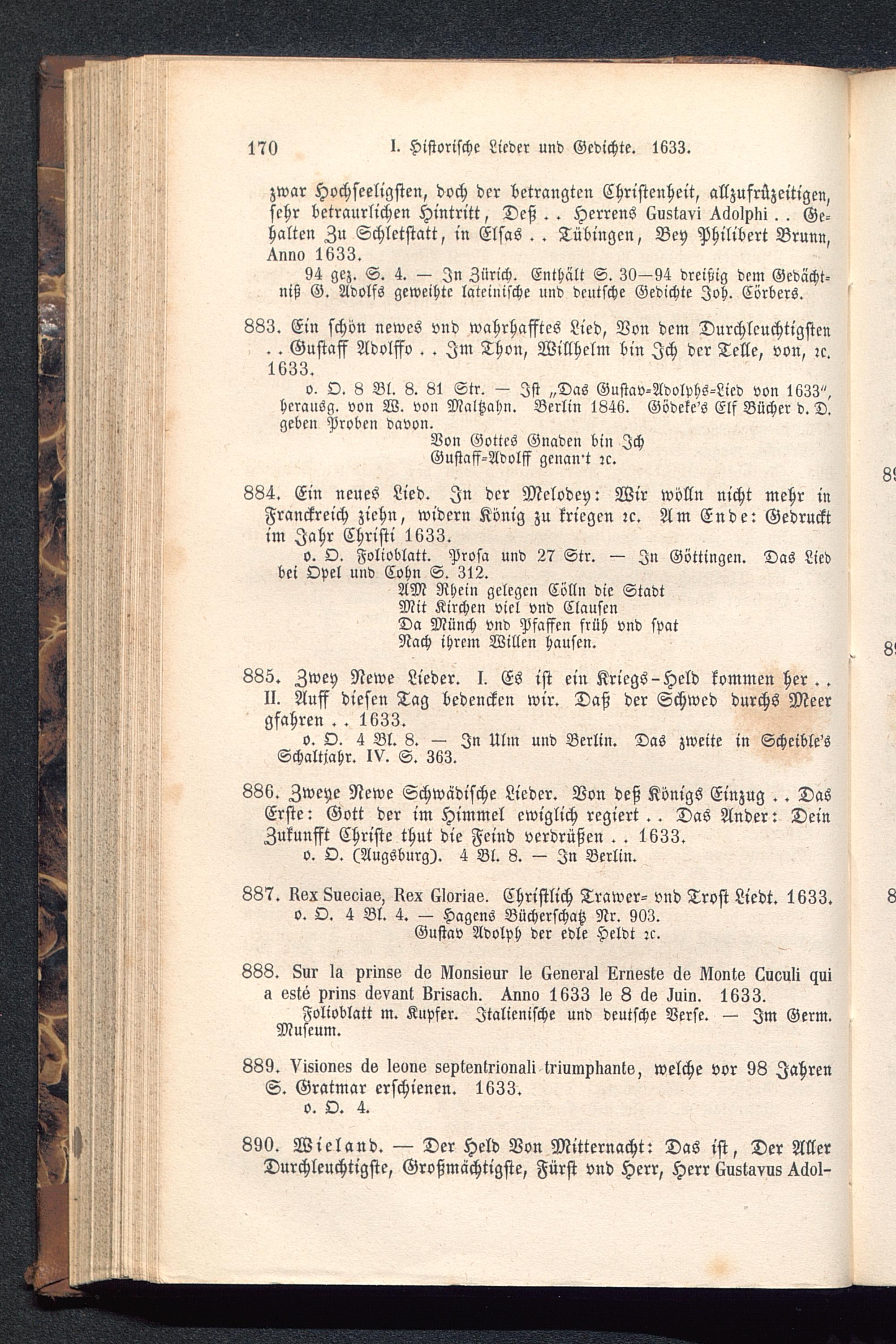 o, O. 8 Bl. 8. 81 Str. — Ist „Das Gustav-Adolphs-Lied von 1633",herausg. von W. von Maltzahn. Berlin 1846. Gödeke's Elf Bücher d. D.gebe» Proben davon.