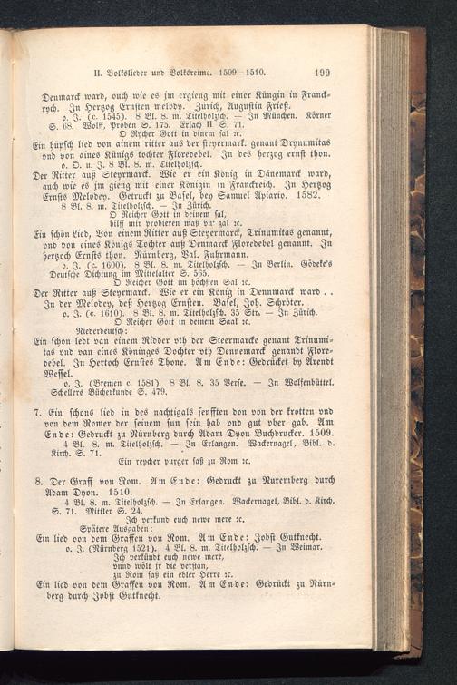 O Nychcr Gott in dincm sal ?c.Ein hüpsch licd von ainem ritter aus der stcyermark. genant Drynumitasvnd von aineS Künigs tochter Floredebcl. In des Herzog ernst thon.o. O. u. I. 8 Bl. 8. m. Titclholzsch.Der Ritter auß ^-teyrmarck. Wie er ein König in Däncmarck ward,auch wie es jm gieng mit einer Königin in Franckreich. In HcrtzogErnsts Melodcy. Getruckt zu Basel , bey Samuel Aviario. 1582.8 Bl. 8. m. Titclholzsch. - In Zürich .