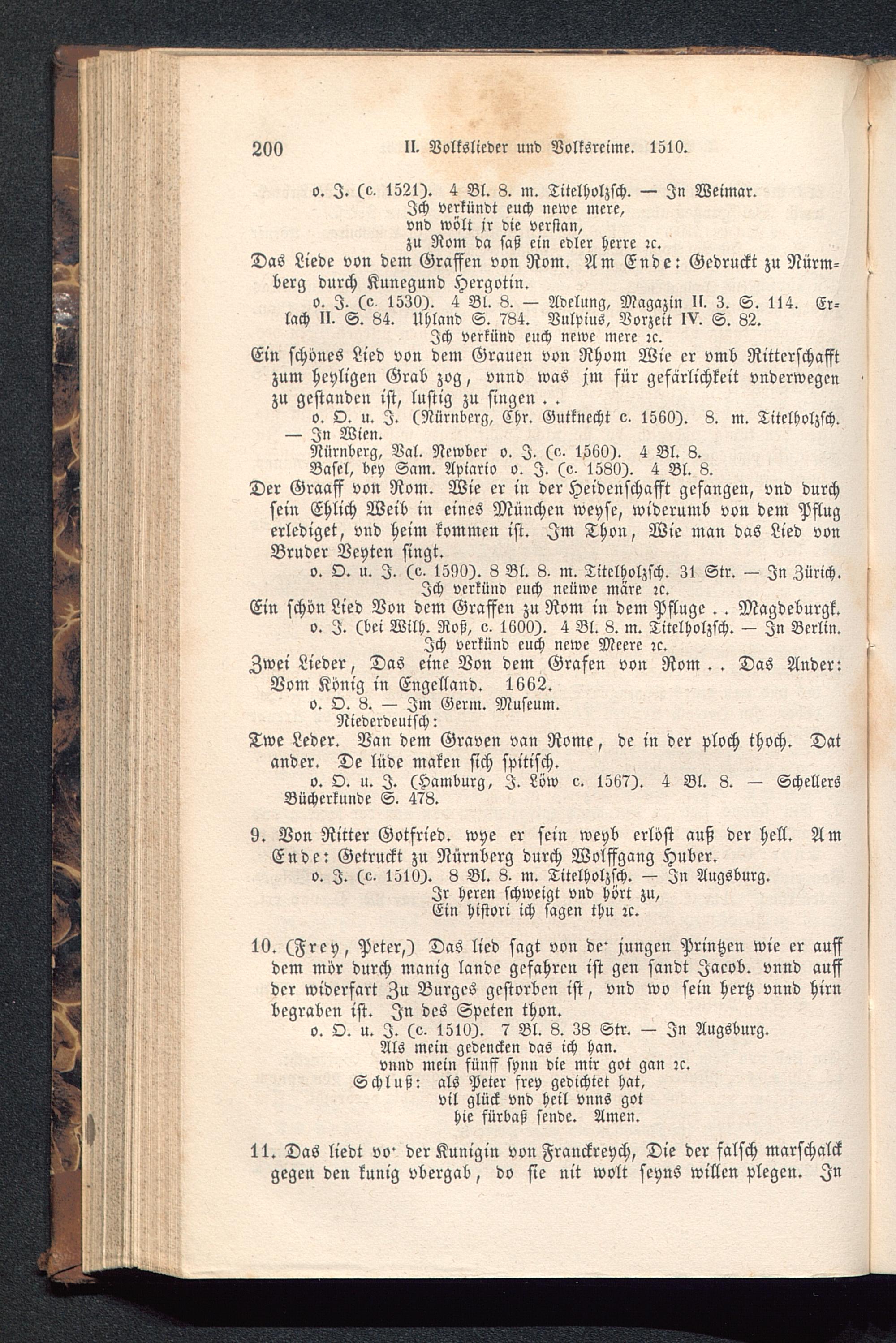 o. I. (o 1530). 4 Bl. 8. — Adclung, Magazin II. 3. S. 114. Er--lach II. S. 84. Uhland S. 784. Vulpius, Vorzeit IV. S. 82.Ich verkünd euch newe mere zc.Ein schönes Lied von dem Grauen von Rhom Wie er vmb Ritterschafftzum heyligeu Grab zog, vnnd was jm für gefärlichkeit vnderwegenzu gestanden ist, lustig zu singen. .