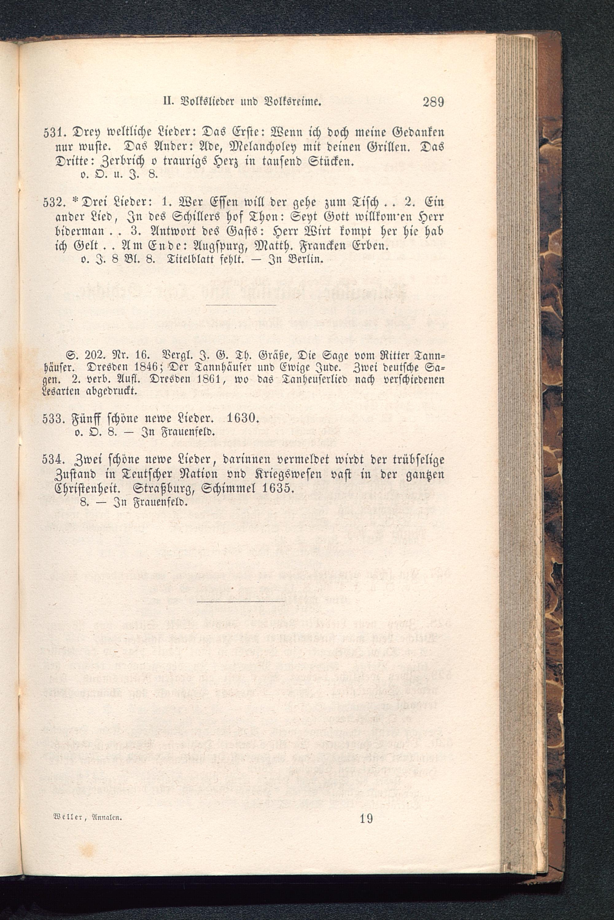 S. 202. Nr. 16. Vergl. I. G. Th. Gräße , Die Sage vom Ritter Tann-häuser. Dresden 1846; Der Tamihänser und Ewige Jude. Zwei deutsche Sa-gen. 2. verb. Aufl. Dresden 1861, wo das Tanhcuscrlicd nach verschiedenenLesarten abgedruckt.