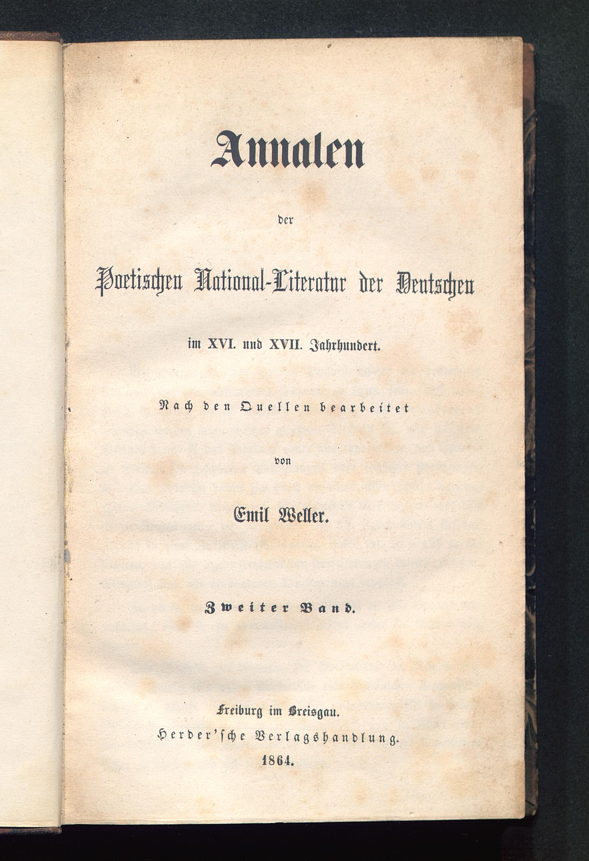 AnnalenderPoetichm Willml-Mraw der Deutschen im XVI. und XVII. Jahrhundert.Nach den Quellen bearbeitetvonEmil Weller.Zweiter Band.Freiburg im Sreisgau.Herde r'sche Verlagshandlung.I8K4.
