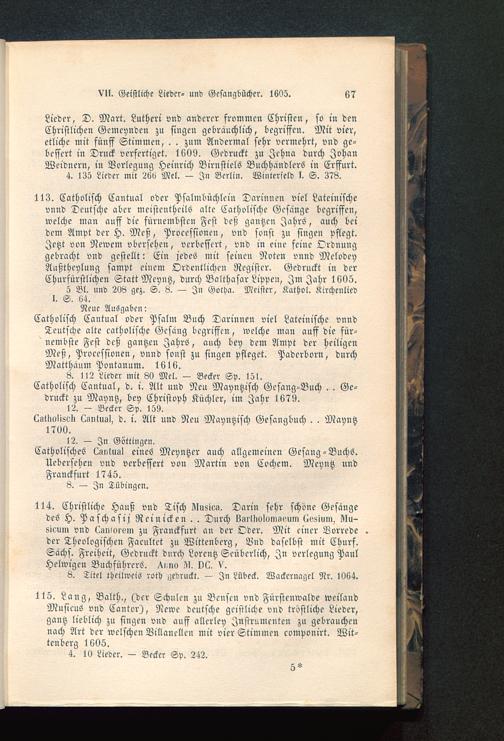 VII. Geistliche Lieder- und Gesangbücher. 1605.