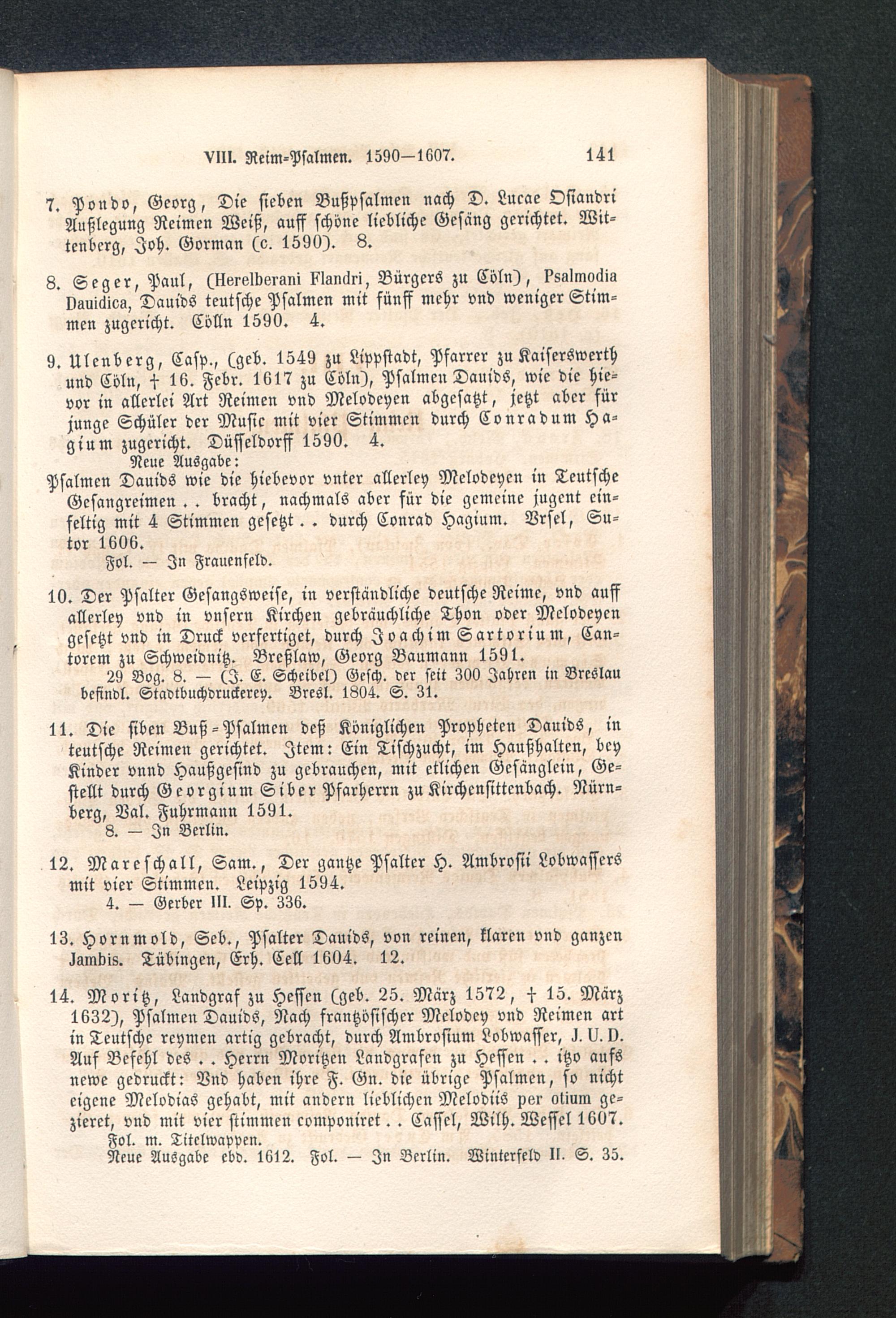 7. Pondo, Georg, Die sieben Bußpsalmen nach D. Lucae OsiandriAußlegung Reimen Weiß, auff schöne liebliche Gesang gerichtet. Wit-tcnbcrg, Joh. Gorman (c. 1590). 8.