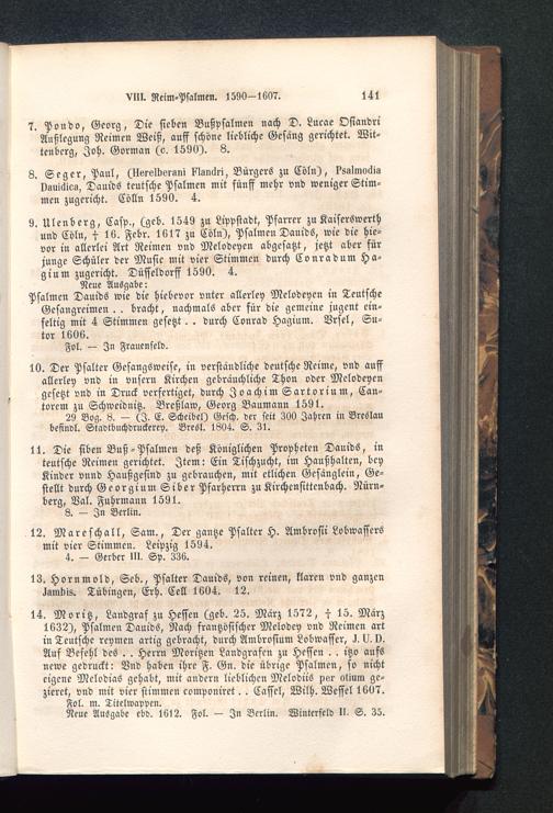 8. Seger, Paul, (Uvi-klbsrgm Mndri, Bürgers zu Cöln), ?sglmo6isvsuiäios, Dauids teutsche Psalmen mit sünff mehr vnd weniger Stim-men zugcricht. Cölln 1590. 4.