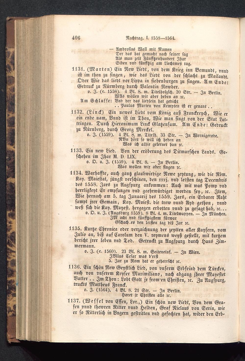 o. O. u. I. (1559). 4 Bl. 8. - In Berlin .