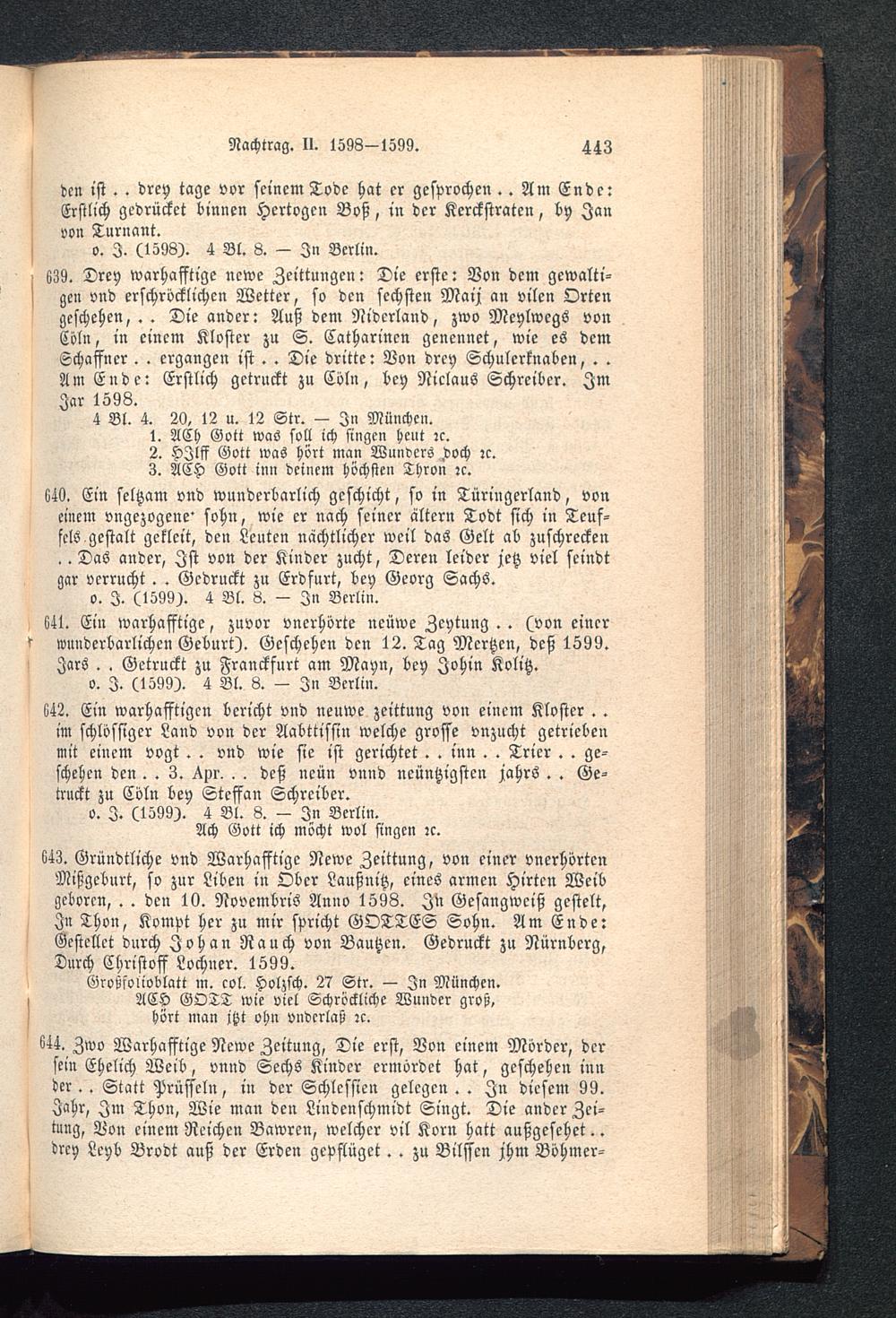 o. I. (1598). 4 Bl. 8. - In Berlin .