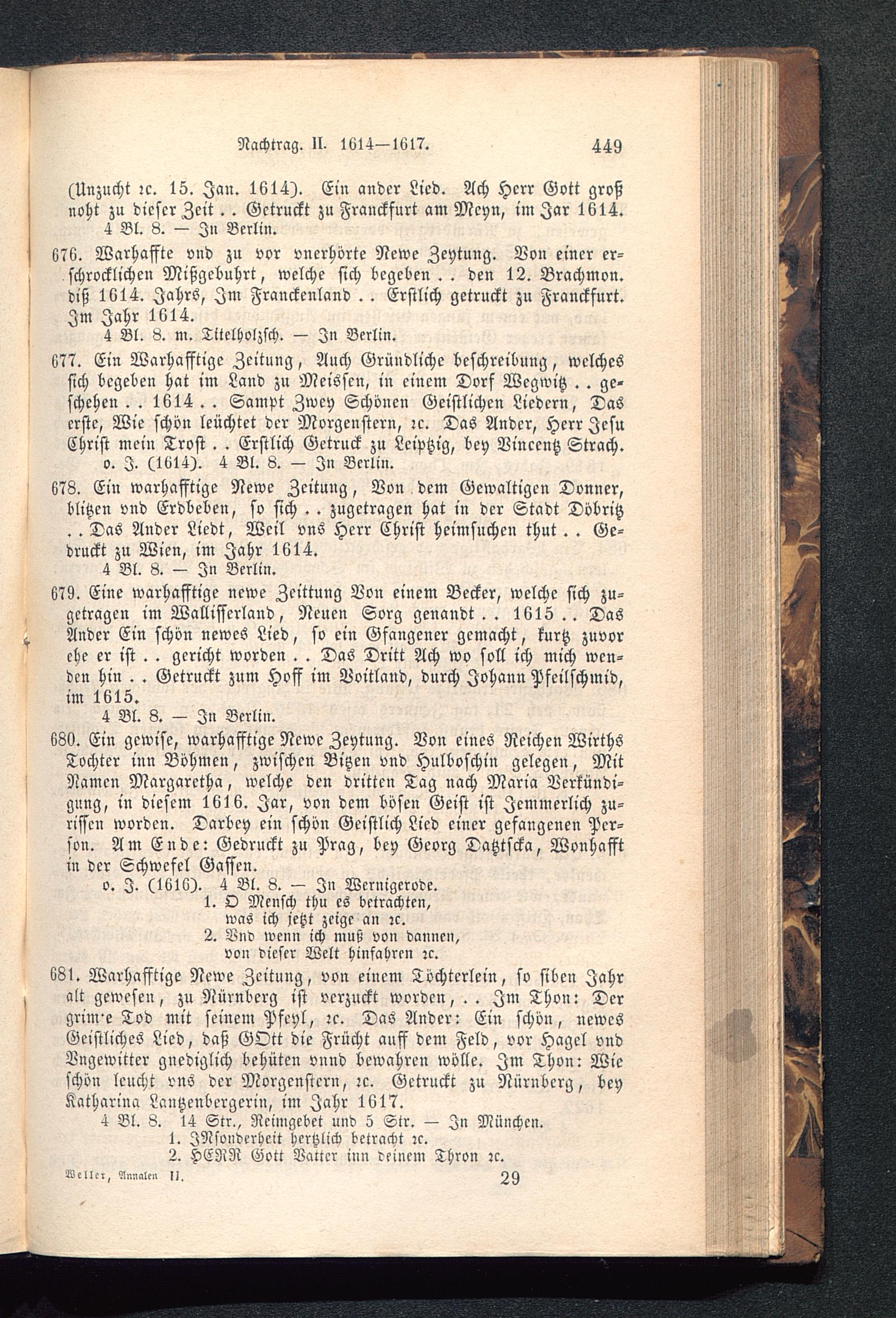 (Unzucht:c. 15. Jan. 1614). Ein ander Lied. Ach Herr Gott großnoht zu dieser Zeit.. Gctruckt zu Franckfurt am Meyn, im Jar 1614.4 Bl. 8. - In Berlin .