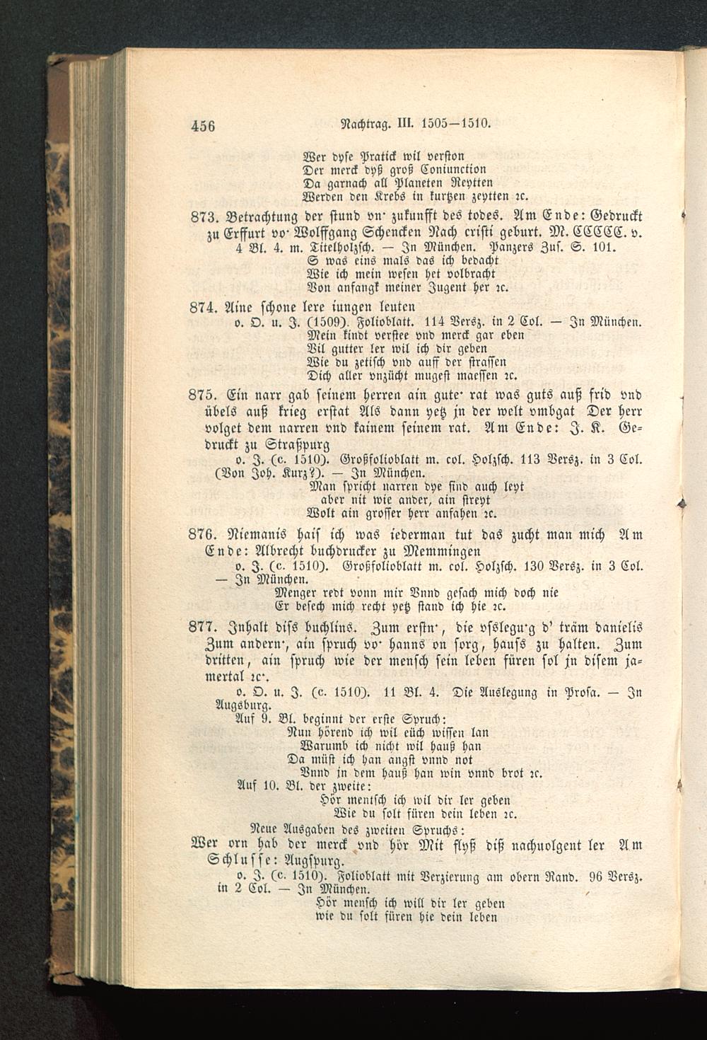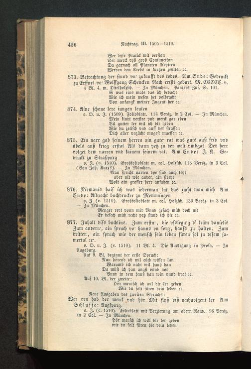 o. I. (e, 1510). Folioblatt mit Verzierung am obern Rand. 96 Versz.in 2 Col. — Jn München .