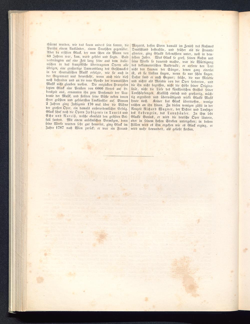 Mozarts , dessen Stern damals im Zenith des RuhmesDeutschland bestrahlte, und früher als die Freundeahneten, ging Glucks Lcbensstern unter, noch in dem-selben Jahre. Was Gluck so groß, seinen Ruhm undseine Werke so dauernd machte, war die Würdigungdes deklamatorischen Ausdrucks; er opferte den Tertnicht den Launen der Sänger, denen ganz einerleiist, ob sie Unsinn singen, wenn sie nur schön singen.Daher fand er auch Gegner; solche, die nur Melodieund nichts als Melodie von der Oper forderten, unddie ihn nicht begriffen, nicht die Höhe seiner Origina-lität, nicht die Tiefe des künstlerischen Geistes seinerTonschöpsungcn. Klassisch einfach und großartig, mäch-tig ergreifend und überwältigend wirkt Glucks Musikheute noch. Keiner hat Gluck übertroffen, wenigereichen an ihn hinan. Zu diesen wenigen zählt in derNeuzeit Richard Wagner , der Dichter und Tonsetzerdes Lohcngrin, des Tannhäuser . In ihm lebtGlucks Genius, er wird die deutsche Oper läutern,oder in seinem hohen Streben untergehen; in beidenFällen wird es ihm ergehen wie es Gluck erging, erwird mehr bewundert, als geliebt sterben.