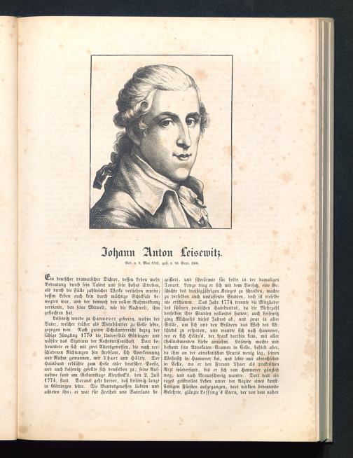 Leisewitz wurde zu Hannover geboren, wohin derVater, welcher früher als Weinhändler zu Celle lebte,gezogen war. Nach gutem Schulunterricht bezog derfähige Jüngling 1770 die, Universität Göttingen undwählte das Studium der Rechtswissenschaft. Dort be-freundete er sich mit zwei Altersgenossen, die nach ver-schiedenen Richtungen hin strebsam, sich Anerkennungund Ruhm gewannen, mit Thaer und Hölty. DerHainbund erblühte zum Heile edler deutscher Poesie,und auch Leisewitz gesellte sich demselben zu; seine Auf-nahme fand am Geburtstage Klopstock's, den 2. Juli1774, statt. Daraus geht hervor, daß Leisewitz langein Göttingen lebte. Die Bundesgenossen liebten undachteten ihn; er war für Freiheit und Vaterland be