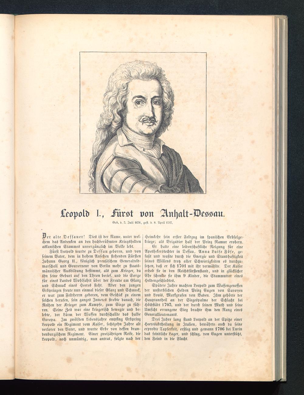 Der alte Dessauer! Dies ist der Name, unter wel-chem das Andenken an den hochberühmten Kriegsheldenaskanischen Stammes unvergänglich im Volke lebt.