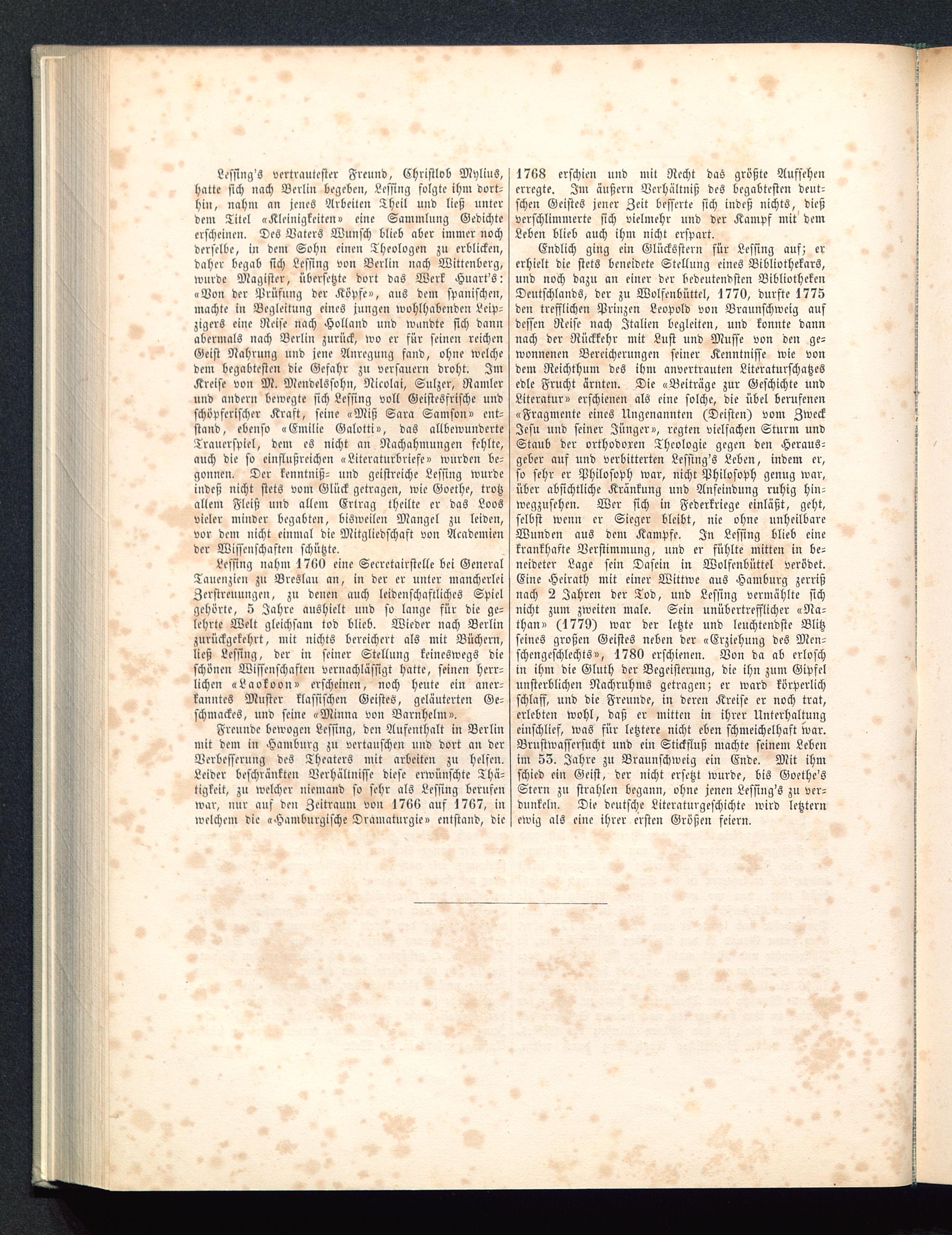 1768 erschien und mit Recht das größte Aufsehenerregte. Im äußern Verhältniß des begabtesten deut-schen Geistes jener Zeit besserte sich indeß nichts, dießverschlimmerte sich vielmehr und der Kampf mit demLeben blieb auch ihm nicht erspart.