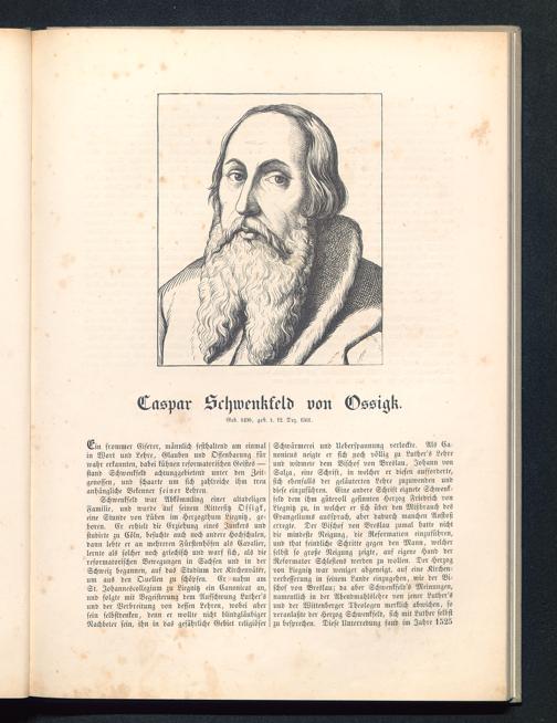 Schwcnkfeld war Abkömmling einer altadcligcnFamilie, und wurde auf seinem Rittersitz Ossigk,eine Stunde von Lüden im Hcrzogthum Licgnitz, ge-boren. Er erhielt die Erziehung eines Junkers undstudirte zu Cvln, besuchte auch noch andere Hochschulen,dann lebte er an mehreren Fürstcnhöfen als Kavalier,lernte als solcher noch griechisch und warf sich, als diereformatorischen Bewegungen in Sachsen und in derSchweiz begannen, auf das Studium der Kirchenvater,um aus den Quellen zu schöpfen. Er nahm amSt. Johannescollegium zu Liegnitz ein Canonicat an,und folgte mit Begeisterung dem Aufschwung Luther'sund der Verbreitung von dessen Lehren, wobei abersein sclbstdenken, denn er wollte nicht blindgläubigerNachbeter sein, ihn in das gefährliche Gebiet religiöser