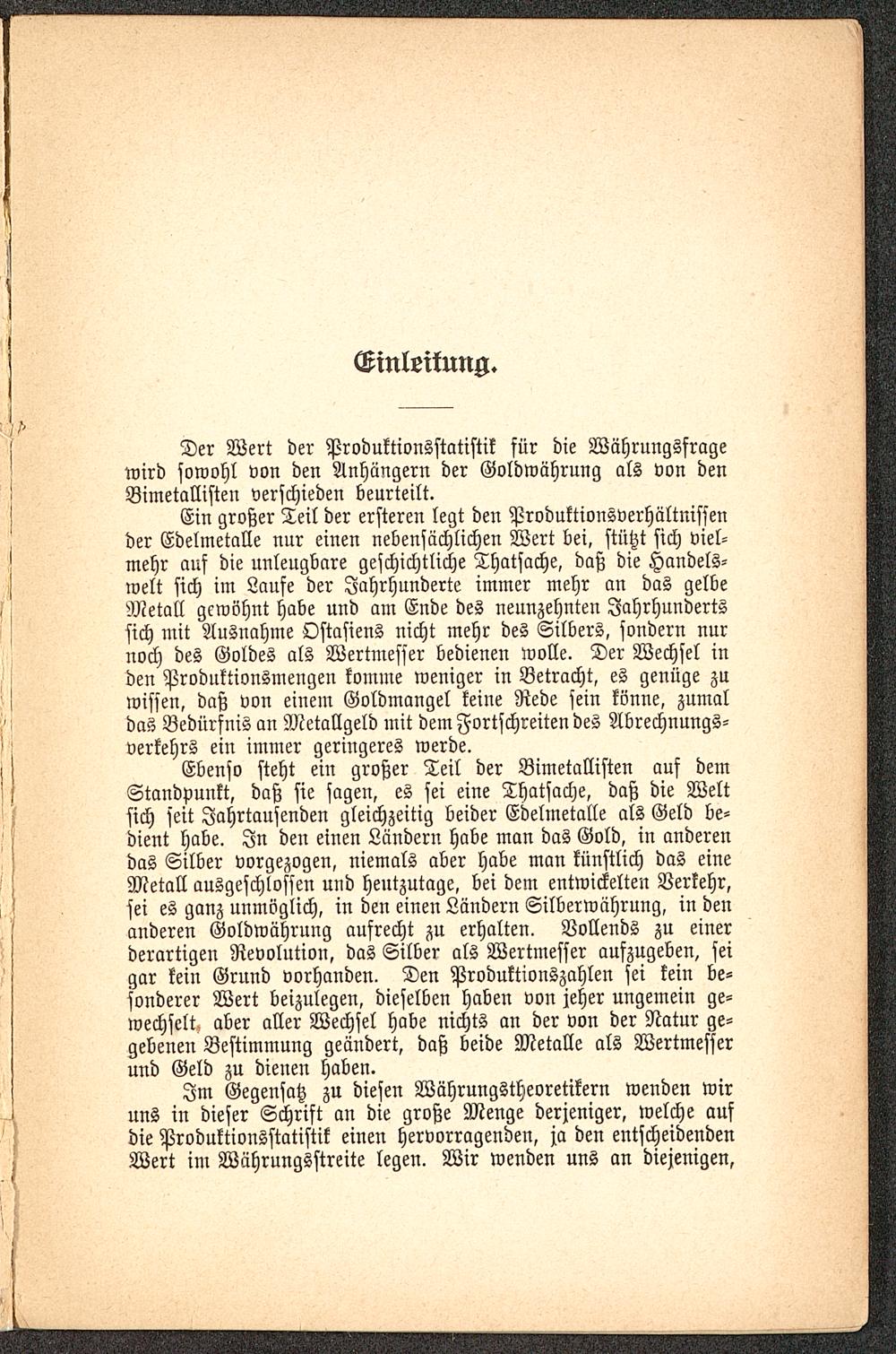 Im Gegensatz zu diesen Währungstheoretikern wenden wiruns in dieser Schrift an die große Menge derjeniger, welche aufdie Produktionsstatistik einen hervorragenden, ja den entscheidendenWert im Währungsstreite legen. Wir wenden uns an diejenigen,