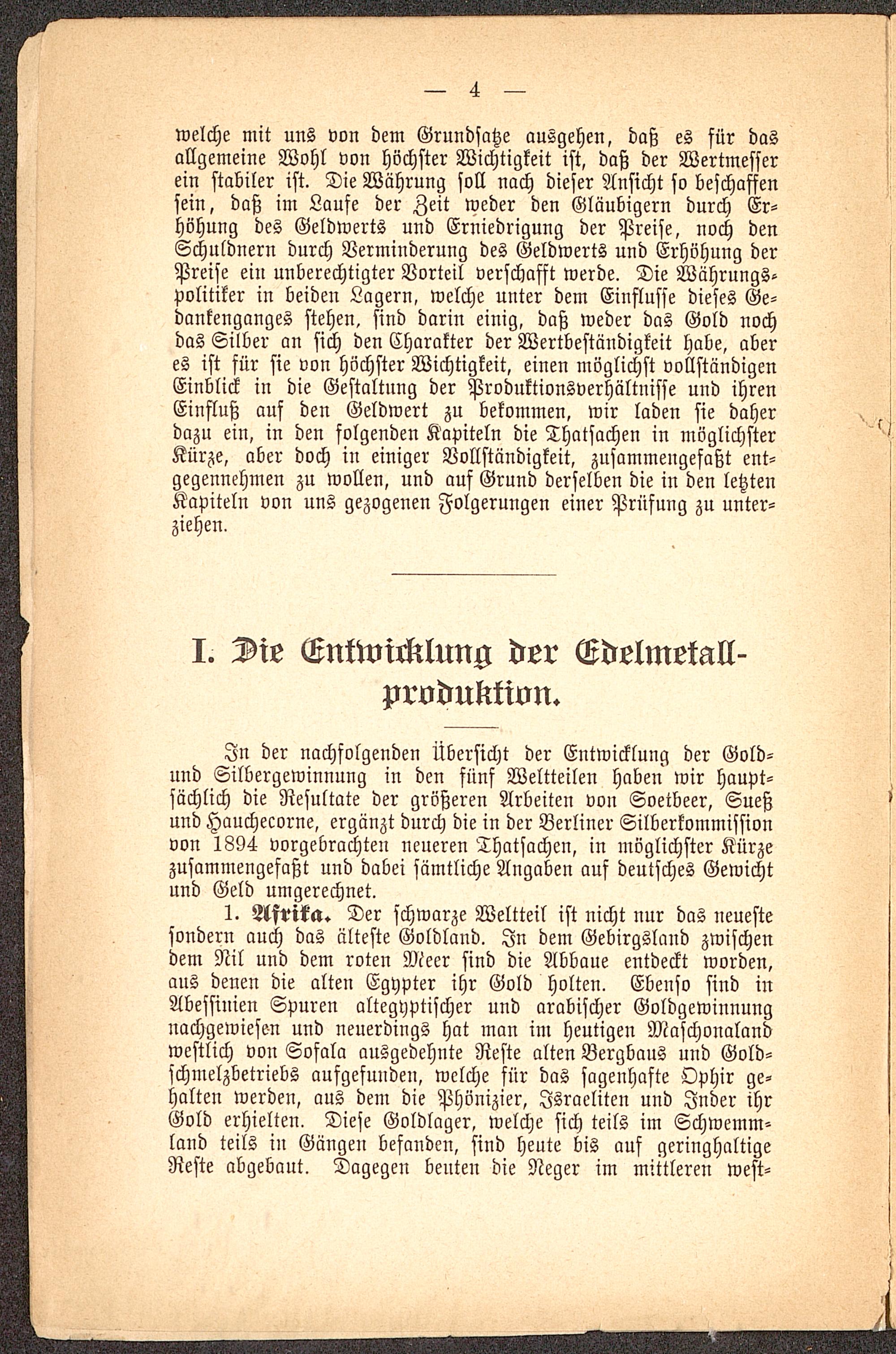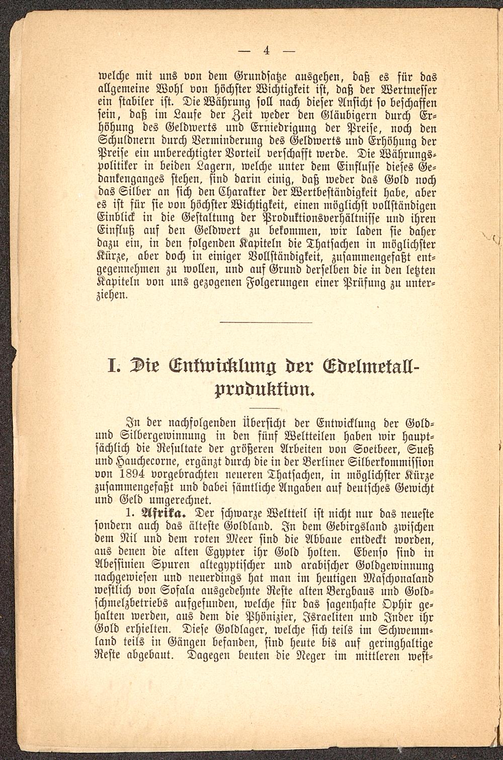 welche mit uns von dem Grundsatze ausgehen, daß es für dasallgemeine Wohl von höchster Wichtigkeit ist, daß der Wertmesserein stabiler ist. Die Währung soll nach dieser Ansicht so beschaffensein, daß im Laufe der Zeit weder den Gläubigern durch Er-höhung des Geldwerts und Erniedrigung der Preise, noch denSchuldnern durch Verminderung des Geldwerts und Erhöhung derPreise ein unberechtigter Vorteil verschafft werde. Die Währungs-Politiker in beiden Lagern, welche unter dem Einflüsse dieses Ge-dankenganges stehen, sind darin einig, daß weder das Gold nochdas Silber an sich den Charakter der Wertbeständigkeit habe, aberes ist für sie von höchster Wichtigkeit, einen möglichst vollständigenEinblick in die Gestaltung der Produktionsverhältnisse und ihrenEinfluß aus den Geldwert zu bekommen, wir laden sie daherdazu ein, in den folgenden Kapiteln die Thatsachen in möglichsterKürze, aber doch in einiger Vollständigkeit, zusammengefaßt ent-gegennehmen zu wollen, und auf Grund derselben die in den letztenKapiteln von uns gezogenen Folgerungen einer Prüfung zu unter-ziehen.