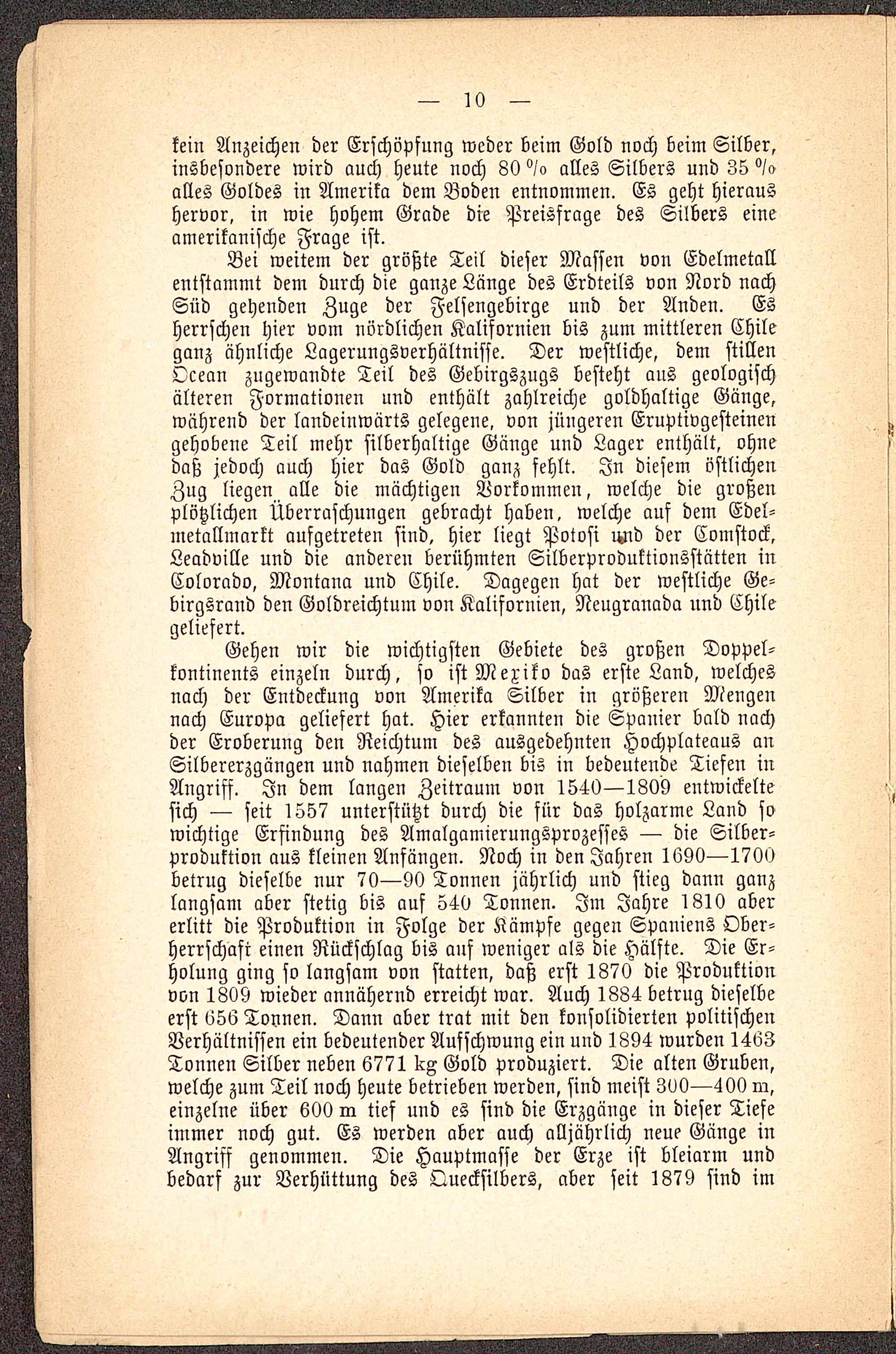 kein Anzeichen der Erschöpfung weder beim Gold noch beim Silber,insbesondere wird auch heute noch 80 °/o alles Silbers und 35 °/oalles Goldes in Amerika dem Boden entnommen. Es geht hieraushervor, in wie hohem Grade die Preisfrage des Silbers eineamerikanische Frage ist.