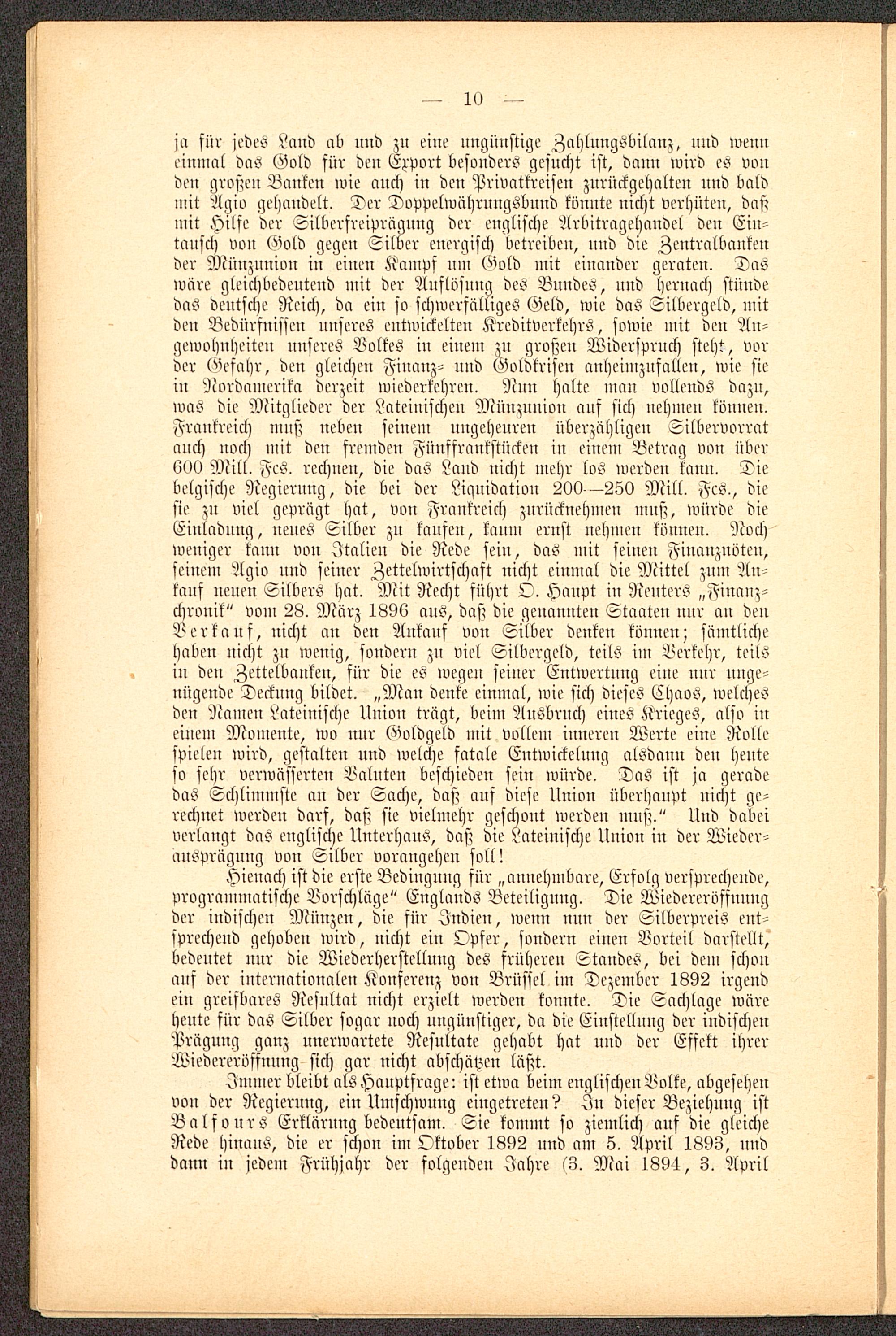 ja für jedes Land nb und zu eine ungünstige Zahlungsbilanz, nnd wenneimnnl das Gold für den Export besonders gesucht ist, dauu wird es vonden großen Banken wie auch iu deu Privattreisen zurückgehalten und baldmit Agio gehandelt. Der Doppelwähruugsbuud könnte nicht verhüten, dcistmit Hilfe der Silberfreivräguug der englische Arbitragehandel den Ein-tausch von Gold gegen Silber energisch betreiben, und die Zentralbankender Münzunion in einen Kampf nm Gold mit einander geraten. Daswäre gleichbedeutend mit der Auflösung des Bnndes, und hernach stündedas deutsche Reich, da ein so schwerfälliges Geld, wie das Silbergeld, mitden Bedürfnissen nnsereS entwickelten Krcditverkehrs, sowie mit den An-gewohnheiten unseres Volkes in einem zn großen Widerspruch steht, vorder Gefahr, deu gleiche» Finanz- und Goldkrisen anheimzufallen, wie siein Nordamerika derzeit wiederkehren, Nim halte man vollends dazn,was die Mitglieder der Lateinischen Münznnion ans sich nehmen können,Frankreich muß neben seinem ungeheuren überzähligen Silbervorratauch noch mit den fremden Fünffrankstücken in einem Betrag von über60V Mill, FcS, rechnen, die das Land nicht mehr los werden kann. Diebelgische Regierung, die bei der Liquidation 200-^250 Mill, Fes,, diesie zu viel geprägt hat, von Frankreich zurücknehmen muß, würde dieEinladung, neues Silber zu lausen, kanm erust uehmeu köuueu. Nochweuiger lauu vou Italien die Rede sciu, das mit seinen Finanznöteu,seinem Agio uud seiuer Zettelwirtschast nicht einmal die Mittel zum An-kauf neuen Silbers hat. Mit Recht führt O, Haupt iu Reuters „Finauz-chrmiik" vom 28, März 1896 ans, das? die genannten Staaten mir au deuVerkauf, nicht an den Ankauf vou Silber deuleu Wunen; sämtlichehaben nicht zu weuig, sondern zn viel Silbergcld, teils im Verkehr, teilsin den Zettelbanken, sür die es wegen seiner Entwertung eine mir unge-nügende Deckung bildet. „Man denke einmal, wie sich dieses Ehaos, welchesden Namen Lateinische lluiou trägt, beim Ausbruch eiues Krieges, also ineinem Momente, wo uur Goldgeld mit vollem iuuereu Werte eine Rollespielen wird, gestalten und welche fatale Eutwickelnng alsdann den heuteso sehr verwässerten Valuten beschieden sein würde. Das ist ja geradedas Schlimmste au der Sache, das; auf diese Union überhaupt nicht ge-rechnet werden darf, daß sie vielmehr geschont werden mnß." lind dabeiverlangt das englische Unterhans, daß die Lateinische Union in der Wieder-ansprägnng von Silber vorangehen soll!