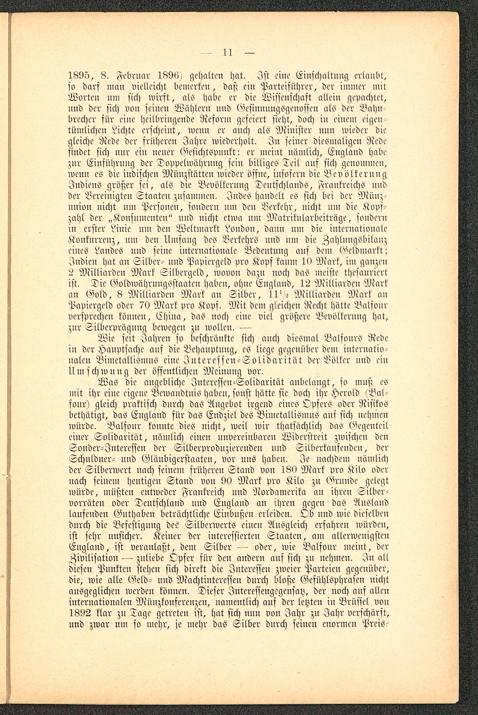 Wie seit Jahren so beschränkte sich auch diesmal Balfonrs Redeiu der Hauptsache ans die Behauptung, es liege gegenüber dem internatio-nalen Bimctallismns eine Interessen-Solidarität der Böller nnd einUmschwung der öffentlichen Meinung vor.