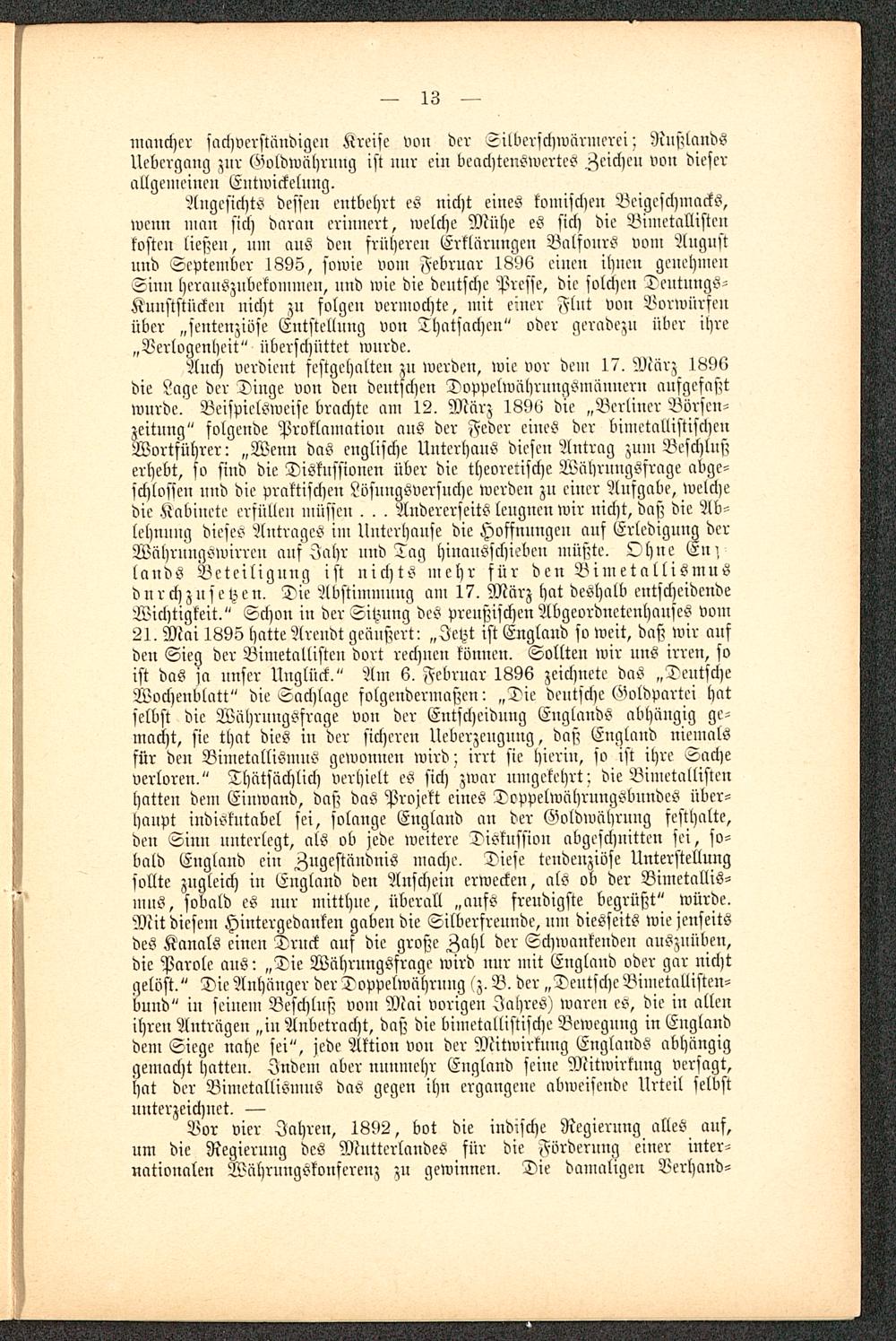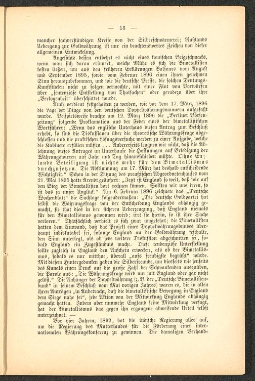 Bor vier Jahren, 1892, bot die indische Regierung alles auf,um die Regierung des Mutterlandes für die Förderung einer inter-nationalen Währnngskonserenz zu gewinnen. Die damaligen Perhand-