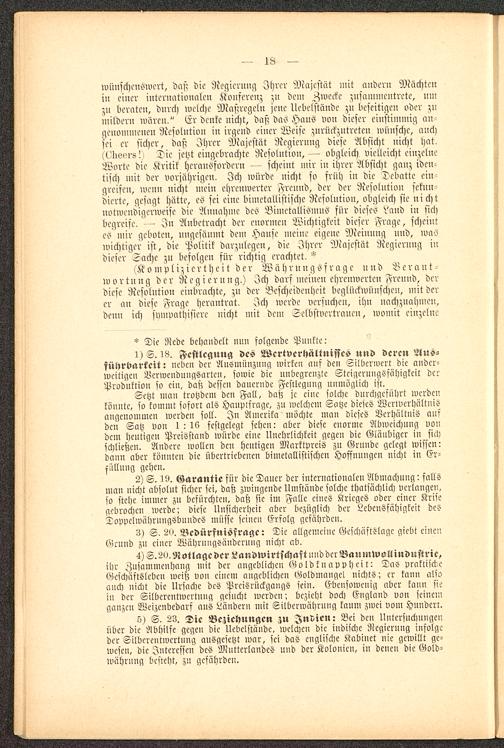 1) S. 18. Festlegung des Wertverhältnisses und deren Aus-führbarkeit: neven der Ansmünzung wirken nnf den Silberwert die ander-weitigen Lcrwcndnngsarten, sowie die unbegrenzte Steigernngsfähigtcit derProduktion so ein, das; dessen dancrnde Festlegung unmöglich ist.