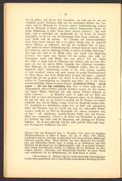 Februar 1895 nnd Bourgeois vom lt. Dezember 1895, sowie des belgischenMinisterpräsidenten de Sinei de Nayer, der am IL. März 1890 erklärte,das; Belgien nicht die Juitiative zur Berufung einer internationalen Währnngs-tonfercnz ergreifen könne. Wenn Balfonr von einer Majorität des französi-schen und italienischen BolkeS redet, so genügt es zu konstatieren, daß dieseMehrheit sich überhaupt nni den Währnngsstreit nicht im geringsten kümmert.Was endlich Nord-Amerika betrifft, so erklärten sich der Präsident der Ver-einigten Staaten , (5levclcind, uud Schatzsckrctär Ccirlisle bei jedem Anlaßnoch entschiedener für die Goldwährung, als Hicks-Beach es gethan.