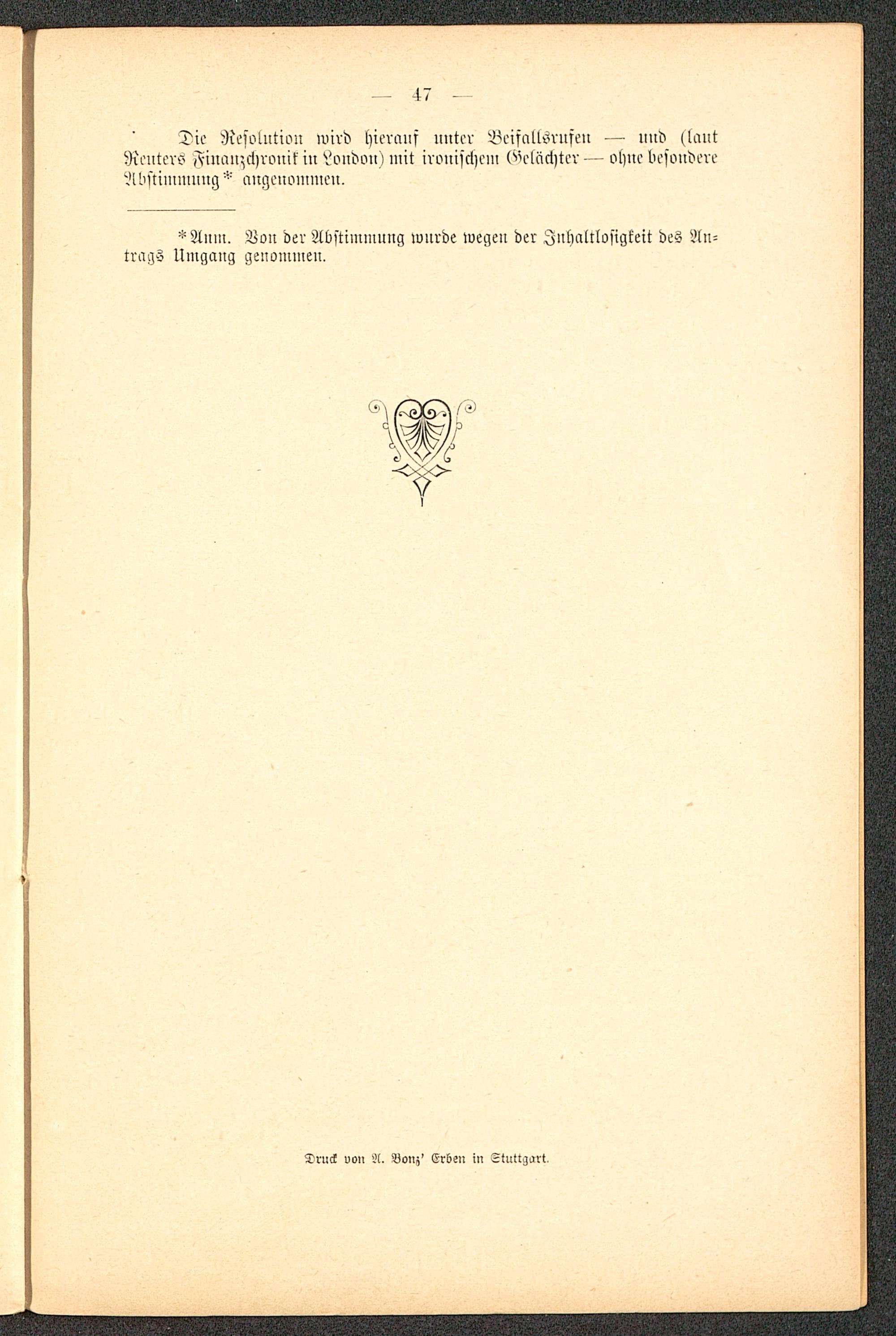 ^Aiiin. Von der Abstimmung wnroe wegen der Jnholtlosigteit des An-trags Umgang genommen.