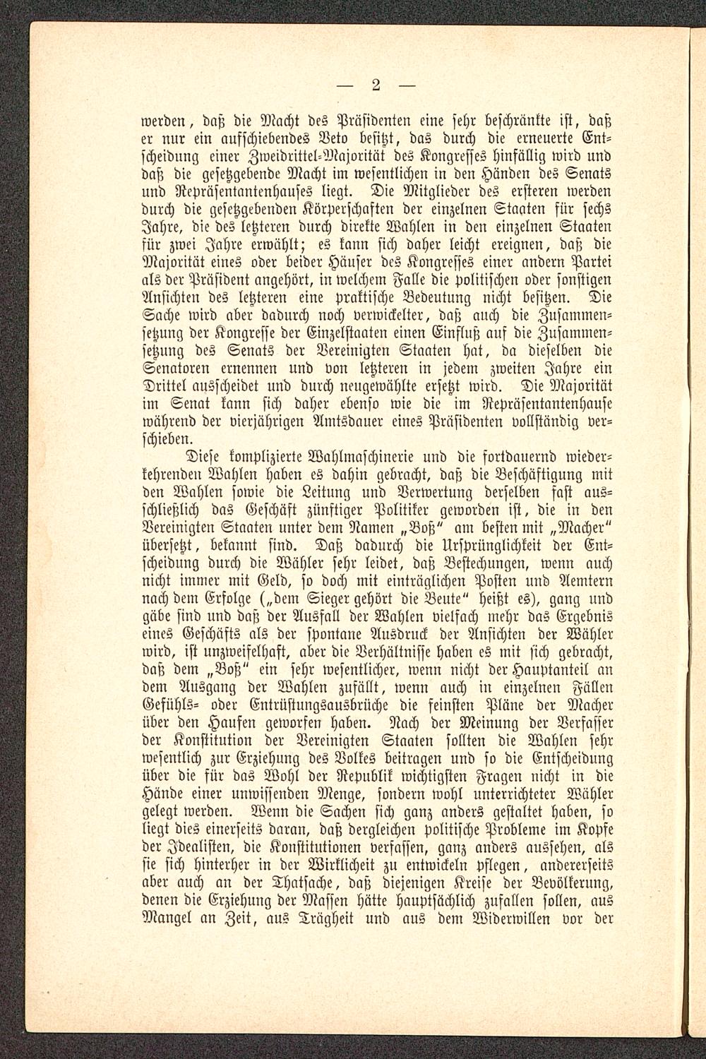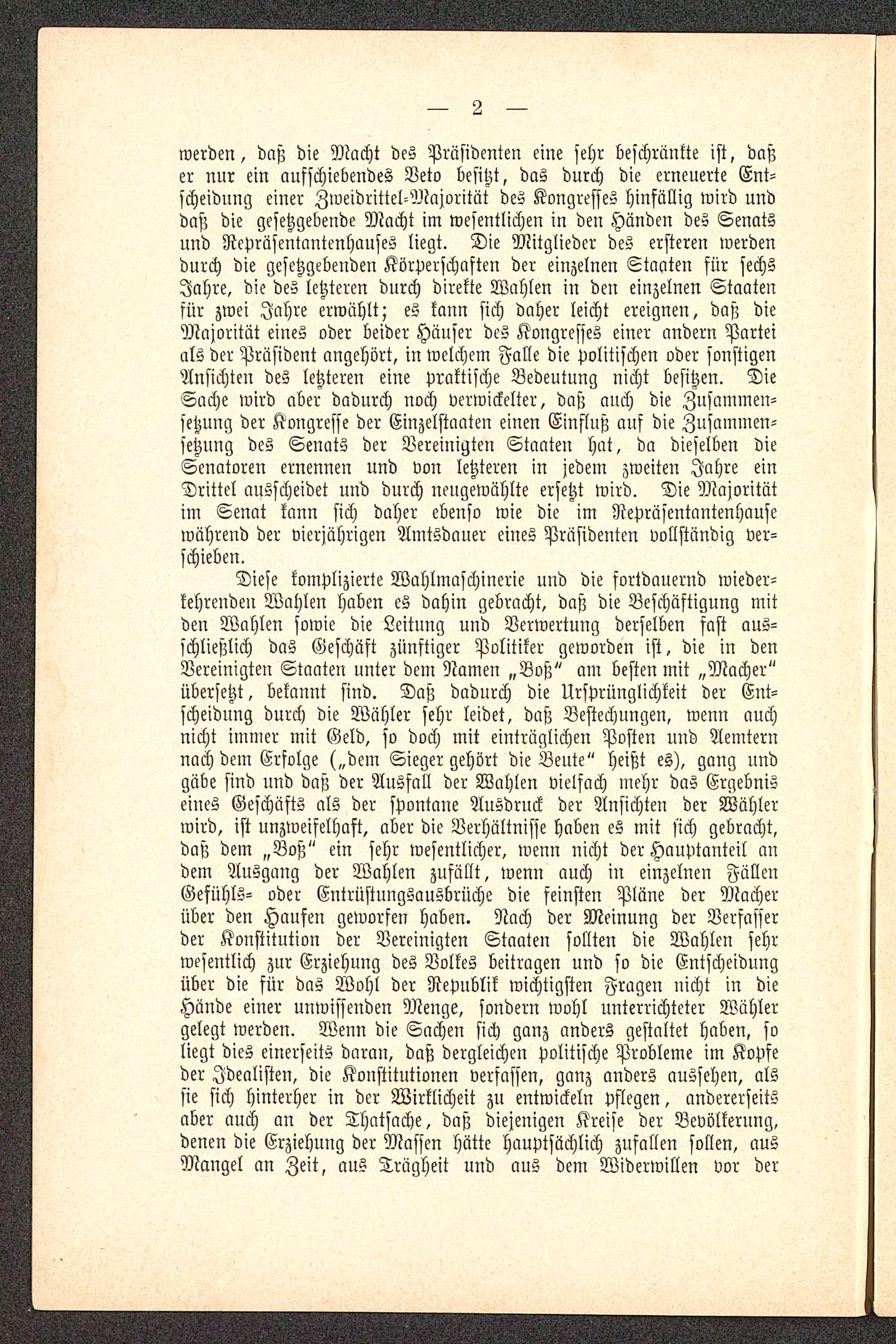 Diese komplizierte Wahlmaschinerie und die sortdauernd wieder-kehrenden Wahlen haben es dahin gebracht, daß die Beschäftigung mitden Wahlen sowie die Leitung und Verwertung derselben fast aus-schließlich das Geschäft zünftiger Politiker geworden ist, die in denVereinigten Staaten unter dem Namen „Boß" am besten mit „Macher"übersetzt, bekannt sind. Daß dadurch die Ursprünglichkeit der Ent-scheidung durch die Wühler sehr leidet, daß Bestechungen, wenn auchnicht immer mit Geld, so doch mit einträglichen Posten und Aemternnachdem Erfolge („dem Sieger gehört die Beute" heißt es), gang undgäbe sind und daß der Ausfall der Wahlen vielfach mehr das Ergebniseines Geschäfts als der spontane Ausdruck der Ansichten der Wählerwird, ist unzweifelhaft, aber die Verhältnisse haben es mit sich gebracht,daß dem „Boß" ein sehr wesentlicher, wenn nicht der Hauptanteil andem Ausgang der Wahlen zufällt, wenn auch in einzelnen FällenGefühls- oder Entrüstungsausbrüche die feinsten Pläne der Macherüber den Haufen geworfen haben. Nach der Meinung der Verfasserder Konstitution der Vereinigten Staaten sollten die Wahlen sehrwesentlich zur Erziehung des Volkes beitragen und so die Entscheidungüber die für das Wohl der Republik wichtigsten Fragen nicht in dieHände einer unwissenden Menge, sondern wohl unterrichteter Wühlergelegt werden. Wenn die Sachen sich ganz anders gestaltet haben, soliegt dies einerseits daran, daß dergleichen politische Probleme im Kopfeder Idealisten, die Konstitutionen verfassen, ganz anders aussehen, alssie sich hinterher in der Wirkliches zu entwickeln Pflegen, andererseitsaber auch an der Thatsache, daß diejenigen Kreise der Bevölkerung,denen die Erziehung der Massen hätte hauptsächlich zufallen sollen, ausMangel an Zeit, ans Trägheit und aus dem Widerwillen vor der