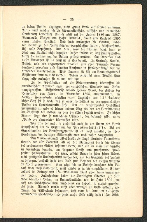 zu hohen Preisen abgingen, nicht genug Land auf Kredit ankaufen.Auf einmal machte sich die südamerikanische, russische und rumänischeKonkurrenz bemerklich: Fleisch erlitt seit den Jahren 1886 und 1887.Baumwolle, Weizen und Hafer 1892/94, Mais und Kartoffel 1895einen rapiden Preisfall. Und doch verlangten die Banken, welchedie Gelder zu den Landankaufen vorgeschossen hatten, selbstverständ-lich volle Bezahlung. Aus dem, was der Farmer baut, kann erZins und Kapital nicht bezahlen; daher fordert er, daß seine Schuldendurch die Entwertung der Valuta gekürzt werden. So sonderbar auchdieses Verlangen ist, so ernst ist es ihm damit. In Kentucky, Kansas ,Dakota und den angrenzenden Staaten sind schon Tausende Farmerbankerott geworden und schweben Tausende in ständiger Angst vor derdrohenden Subhastation. Was kümmern sie sich um Nernunftgründe?Schlimmer kann es nicht werden. Bryan verspricht einen Wechsel ihrerLage; also versuchen sie es mal mit ihm.