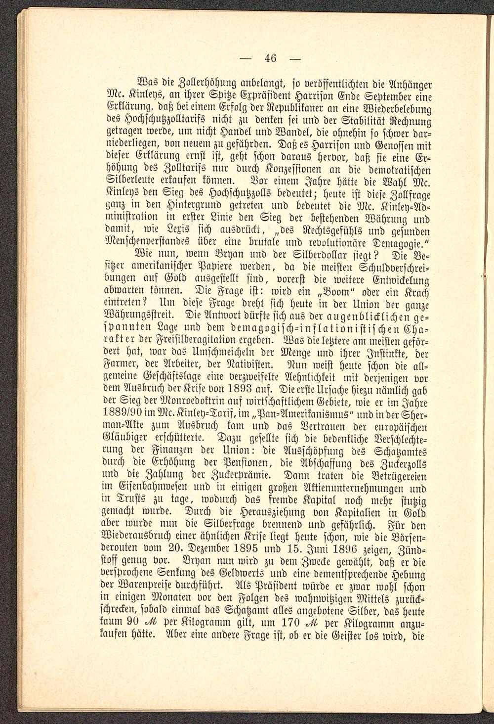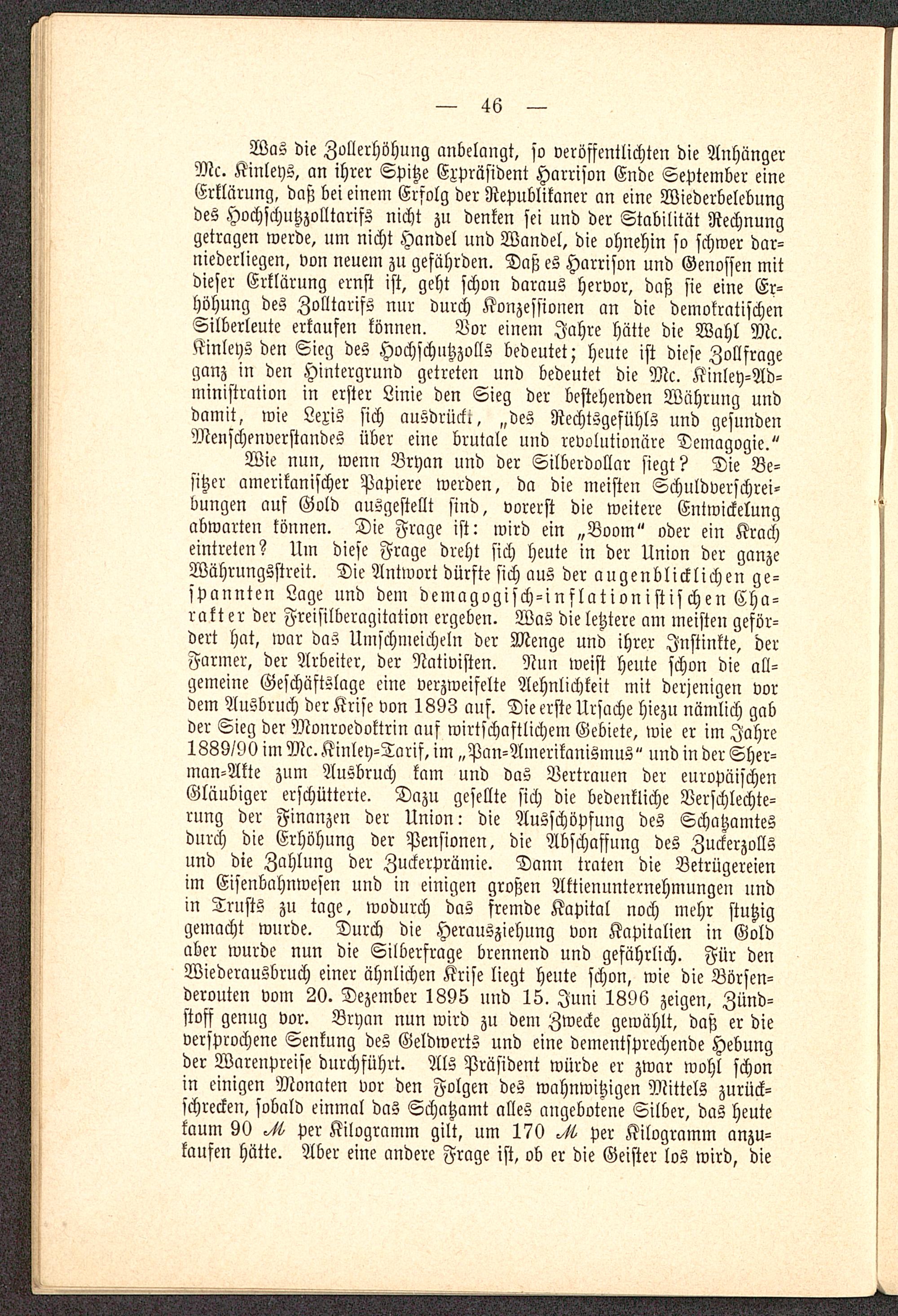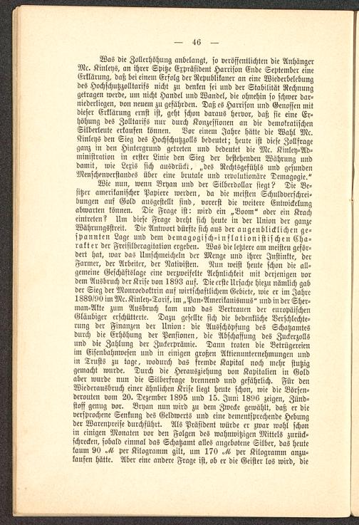 Wie nun, wenn Brycm und der Silberdollar siegt? Die Be-sitzer amerikanischer Papiere werden, da die meisten Schuldverschrei-bungen auf Gold ausgestellt sind, vorerst die weitere Entwickelungabwarten können. Die Frage ist: wird ein „Boom" oder ein Kracheintreten? Um diese Frage dreht sich heute in der Union der ganzeWährungsstreit. Die Autwort dürfte sich aus der augenblicklichen ge-spannten Lage nnd dem demagogisch-inflationistischen Cha-rakter der Freisilberagitation ergeben. Was die letztere am meisten geför-dert hat, war das Umschmeicheln der Menge und ihrer Instinkte, derFarmer, der Arbeiter, der Nativisten. Nuu weist heute schon die all-gemeine Geschäftslage eine verzweifelte Aehnlichkeit mit derjenigen vordem Ausbruch der Krise von 1893 ans. Die erste Ursache hiezn nämlich gabder Sieg der Monroedoktrin auf wirtschaftlichem Gebiete, wie er im Jahre1889/90 im Mc. Kinley-Tarif, im „Pan-Amerikcmismus" nnd in der Sher-man-Akte zum Ausbruch kam und das Vertrauen der europäischenGläubiger erschütterte. Dazu gesellte sich die bedenkliche Verschlechte-rung der Finanzen der Union: die Ausschöpfung des Schatzamtesdurch die Erhöhung der Pensionen, die Abschaffung des Zuckerzollsund die Zahlung der Zuckerprämie. Dann traten die Betrügereienim Eisenbahnwesen und in einigen großen Aktiennnternehmungen undin Trusts zu tage, wodurch das fremde Kapital noch mehr stutziggemacht wurde. Durch die Herausziehung von Kapitalien in Goldaber wurde nun die Silberfrage brennend und gefährlich. Für denWiederausbruch einer ähnlichen Krise liegt heute schon, wie die Börsen-derouten vom 20. Dezember 1895 nnd 15. Juni 1896 zeigen, Zünd-stoff genug vor. Brycm nun wird zn dem Zwecke gewählt, daß er dieversprochene Senkung des Geldwerts und eine dementsprechende Hebungder Warenpreise durchführt. Als Präsident würde er zwar wohl schonin einigen Monaten vor den Folgen des wahnwitzigen Mittels zurück-schrecken, sobald einmal das Schatzamt alles angebotene Silber, das heutekaum 90 per Kilogramm gilt, um 170 per Kilogramm anzu-kaufen hätte. Aber eine andere Frage ist, ob er die Geister los wird, die