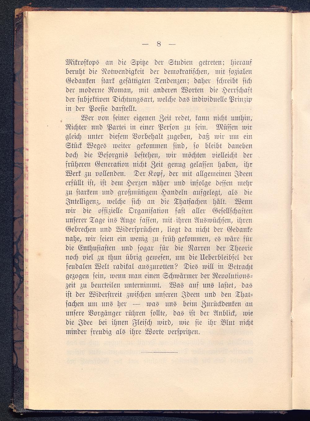Mikroskops an die Spitze der Studien getreten: hieraufberuht die Notwendigkeit der demokratischen, mit sozialenGedanken stark gesättigten Tendenzen; daher schreibt sichder moderne Roman, mit anderen Worten die Herrschaftder subjektiven Dichtungsart, welche das individuelle Prinzipin der Poesie darstellt.