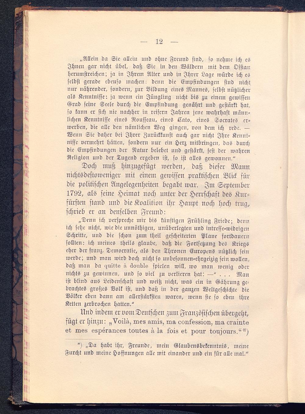 Und indem er vom Deutschen zuni Französischen übergeht,fügt er hinzu; .,Voi1a, ro.es uiuis, ins, Lonlsssion, ro-z, oraintset 02S8 sspsraness toutes g. 1a i'ois et porrr torrjours/'-)