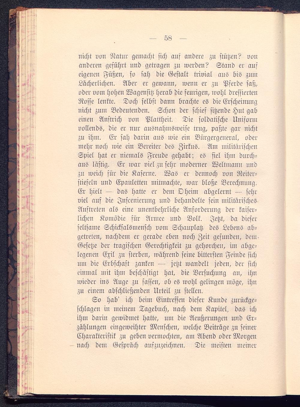 So Hab' ich beim Eintreffen dieser Kunde zurückge-schlagen in meinem Tagebuch, nach dem Kapitel, das ichihm darin gewidmet hatte, um die Aeußerungen und Er-zählungen eingeweihter Menschen, welche Beiträge zu seiuerCharakteristik zu geben vermochten, am Abend oder Morgennach dem Gespräch aufzuzeichnen. Die meisten meiner