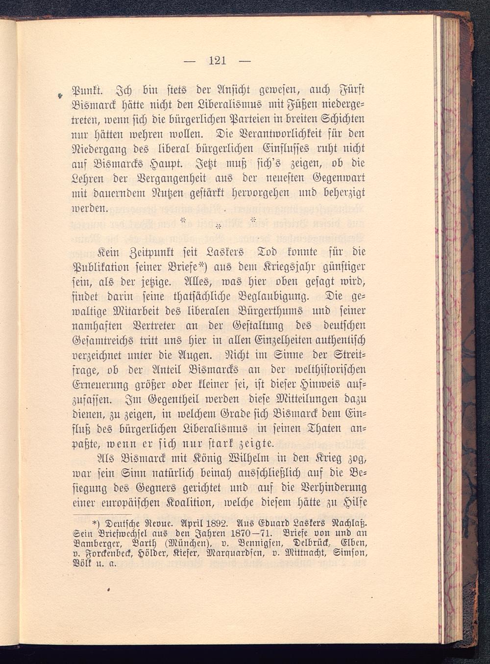 *) Deutsche Revuc. April 189L. Aus Eduard Lasters Nachlaß.Sein Briefwechsel aus den Jahren 1870—71. Briefe von und anBambcrgcr, Barth (München), v. Bennigsen, Delbrück , Elben,v. Forckenbcck, Holder, Kiefer, Marquardicn, v. Mittnacht, Simson,Volt u. a.