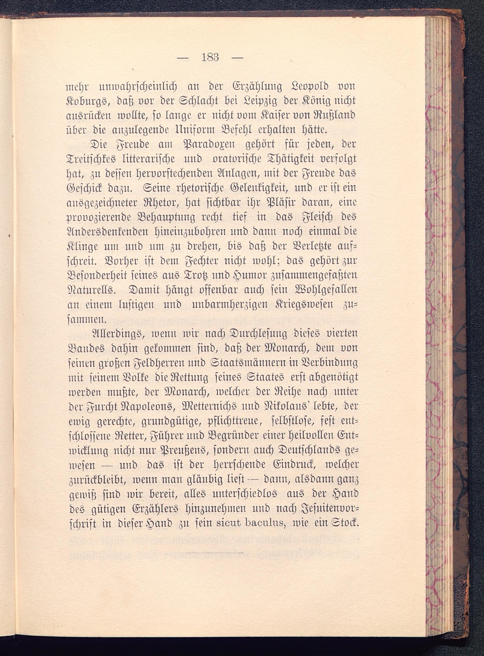 mehr univahrscheinlich an der Erzählung Leopold vonKoburgs, daß vor der Schlacht bei Leipzig der König nichtausrücken wollte, so lange er nicht vom Kaiser von Rußland über die anzulegende Uniform Befehl erhalten hätte.